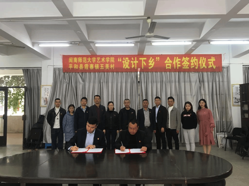 2019年12月19日上午10时,15vip太阳集团与平和县霞寨镇五美村签订“设计下乡”合作协议,学院党政领导及平和县霞寨镇五美村领导出席签约仪式。