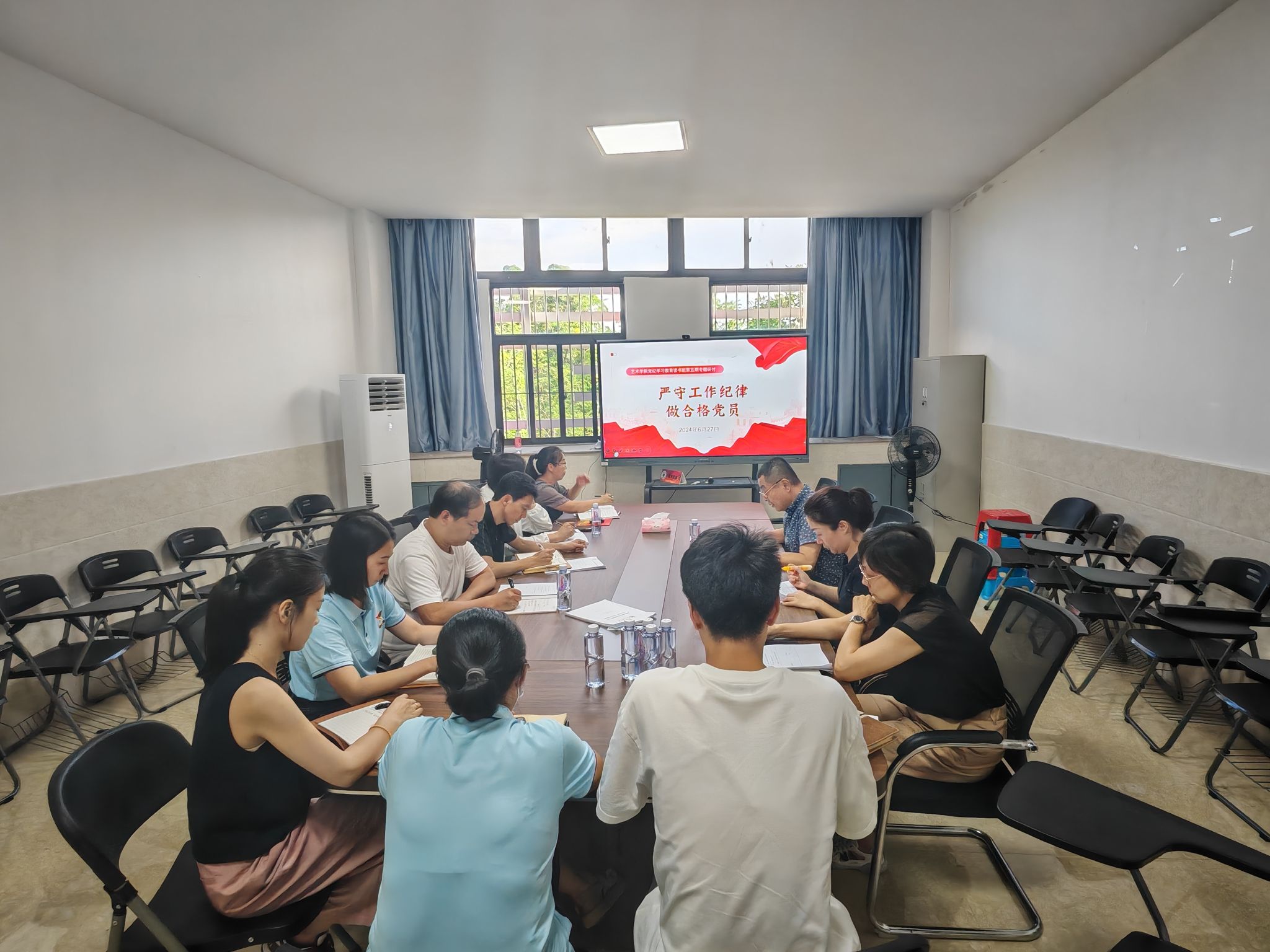6月27日下午,15vip太阳集团在杨孙西艺术馆303会议室举行第五期党纪学习教育读书班集体学习研讨会。学院党政领导班子成员、党委委员、纪委委员、科级干部和各支部书记参加会议。学院党委书记汤跃滨主持会议。