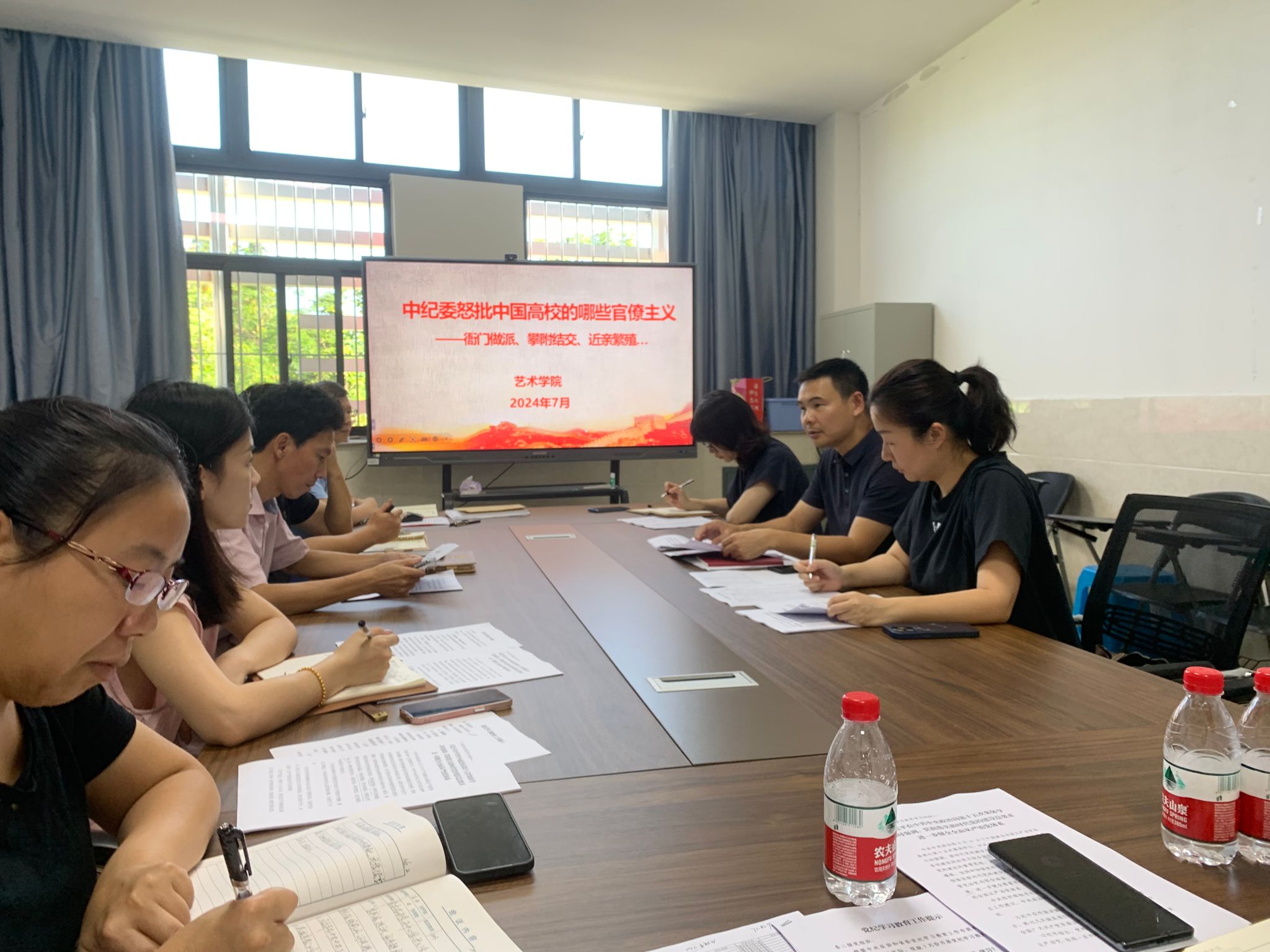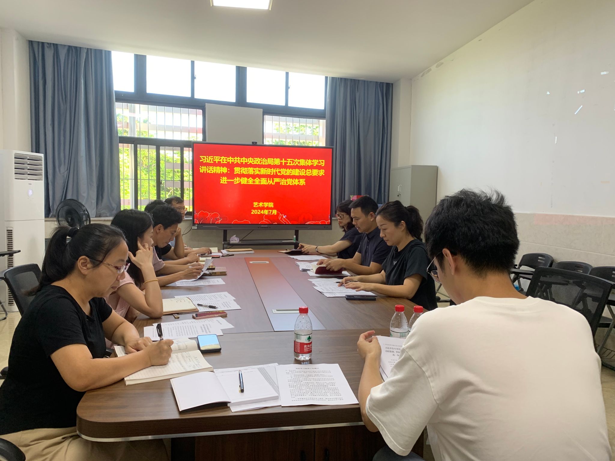 为了进一步贯彻落实学院党纪学习教育工作部署,2024年7月5日下午,15vip太阳集团在杨孙西艺术馆303会议室举行第六期党纪学习教育读书班集体学习研讨会。学院党政领导班子成员、党委委员、纪委委员、科级干部和各支部书记参加学习会。会议由学院党委书记潘艺阳主持。