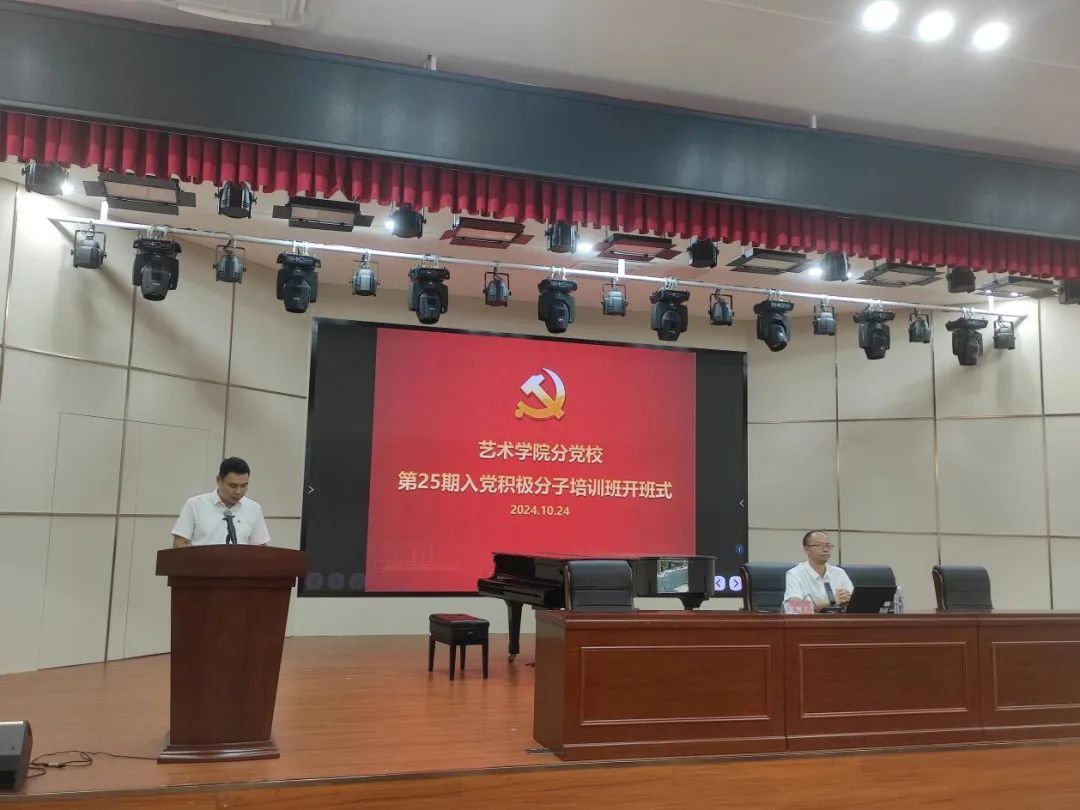 为深入学习贯彻习近平新时代中国特色社会主义思想和党的二十届三中全会精神,提高入党积极分子的政治觉悟和理论水平,我院于2024年10月24日至11月13日举办学院分党校第二十五期入党积极分子培训班。学院党委书记潘艺阳主持开班式并做动员讲话。