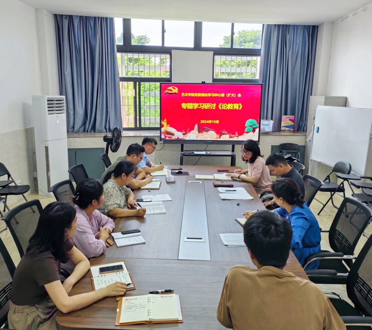 10月17日,学院党委理论学习中心组在杨孙西艺术馆303组织召开专题学习会,学习习近平同志《论教育》。学院党政领导、党委委员、科级干部、各支部书记参加会议,会议由学院党委书记潘艺阳主持。学院党委副书记胡莉丹作重点发言,其他班子成员结合自身工作实际作了交流发言。