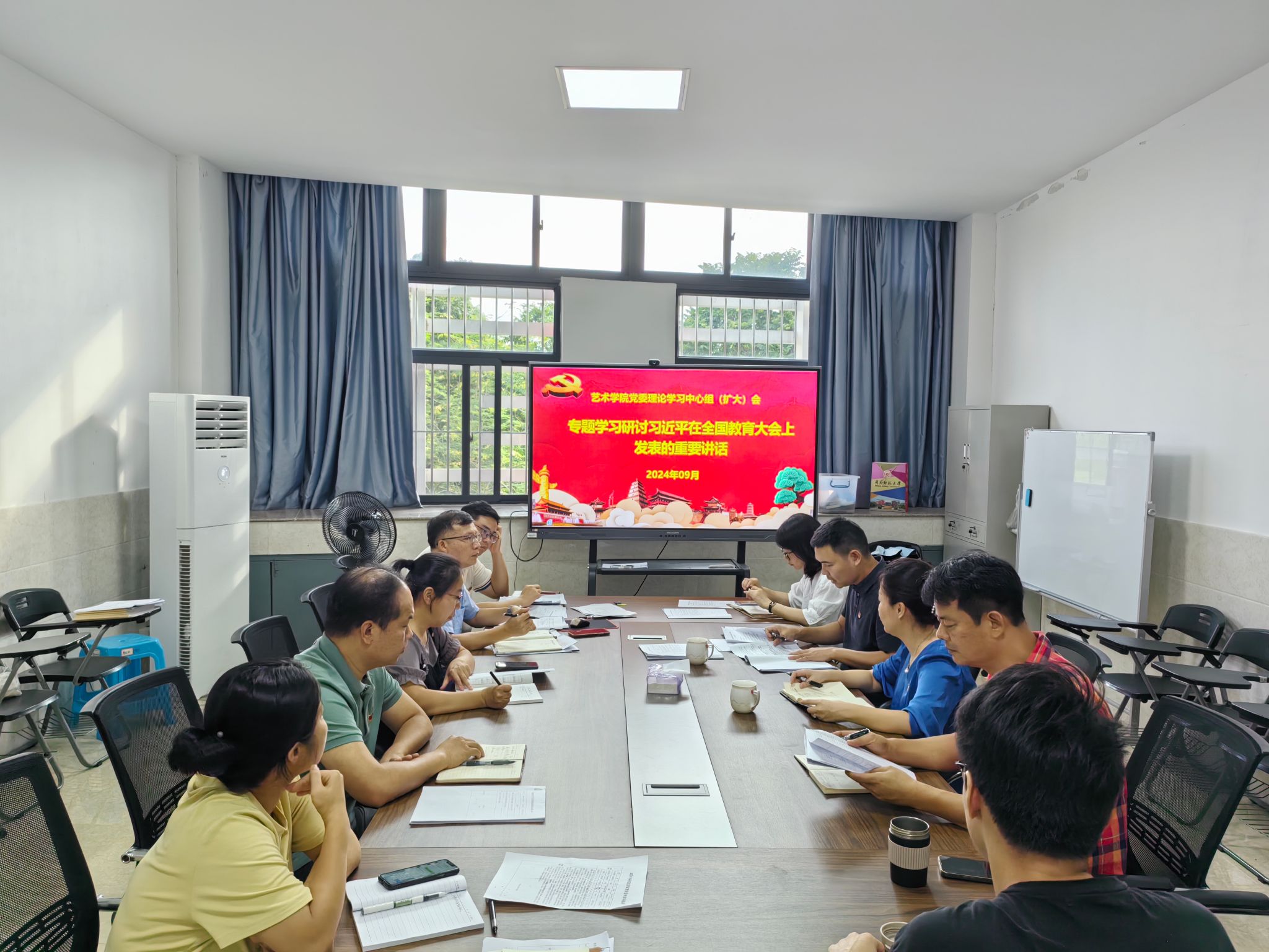 9月26日下午,15vip太阳集团党委理论学习中心组召开学习会,围绕“习近平在全国教育大会上发表的重要讲话”开展集体研讨,学院党委书记潘艺阳领学并作重点发言,其他班子成员结合分管工作实际作交流发言。