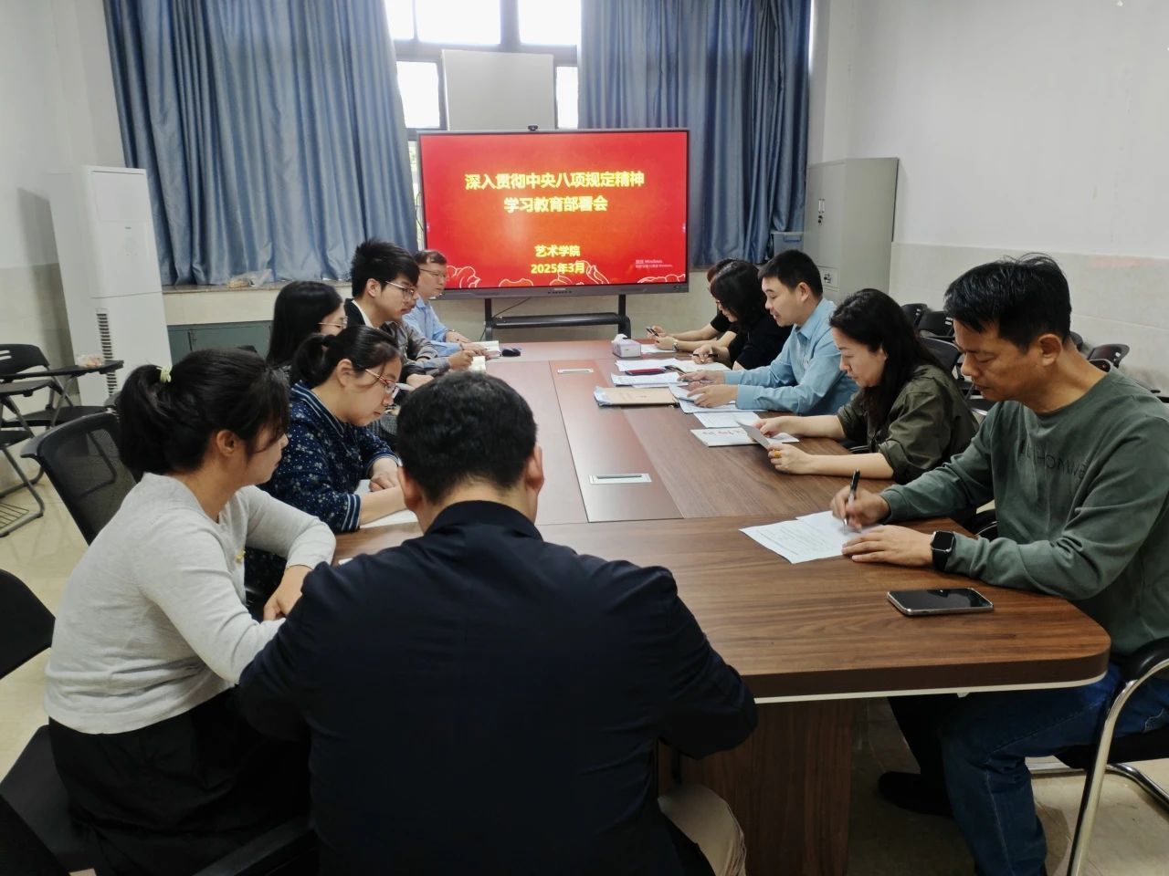 3月27日上午,15vip太阳集团召开深入贯彻中央八项规定精神学习教育启动部署会。学院领导班子成员、党委委员、纪委委员、党支部书记、科级干部代表等参加了会议。会议由学院党委书记潘艺阳主持。