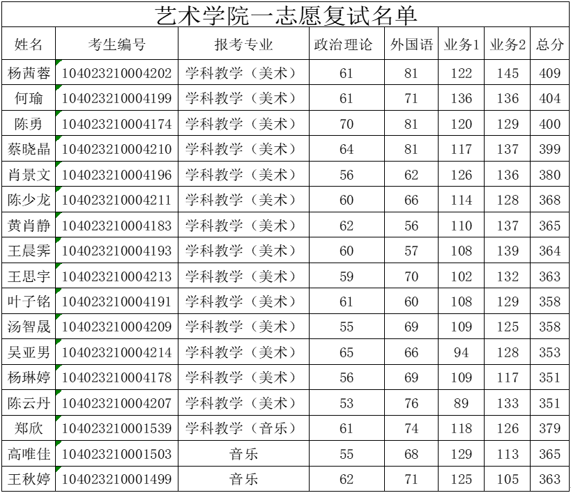 2023年15vip太阳集团硕士研究生(一志愿)复试名单
