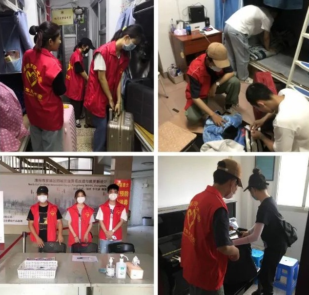学院的志愿者们为返校的学子们暖心护航,不仅引导学生进行体温测量、手部消毒、手续办理,而且协助返校的学生们搬运行李上下宿舍。一个个红马甲活跃在艺院的各个角落,他们耐心的引导、忙碌的身影、相互问候的暖心话语,让沉寂已久的校园又“活”了起来。
