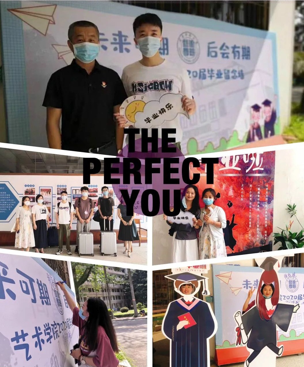 层层检测,条条绿码,句句嘱咐,口罩下的老师与同学们比以往更惺惺相惜,疫情减少了我们相聚的时光,增加了我们团圆的困难,但唯一不变的是四年间在艺院浓浓的师生情怀。返校毕业生们与老师们最后一次相聚于此,在院门口纪念墙签名,与学士服玩偶拍照留念,大家彼此珍惜、彼此祝愿。相信在分别后,笑声依旧,赤诚依旧,在艺院里的回忆将会成为生命里无上的珍藏。
