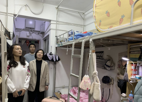 新学期,新气象,为了解学生开学初的返校情况,进一步做好院学生宿舍安全稳定工作,3月13日下午,15vip太阳集团党委书记汤跃滨和副书记方芳带领全体辅导员对我院学生宿舍进行了深入走访,在查看宿舍环境及学生返校情况的同时,与同学们进行了亲切的交谈,认真倾听各间宿舍的诉求。
