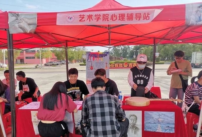 为做好心理健康知识的普及和宣传,营造积极乐观、向上向善的校园心理文化氛围,2021年5月6日,在15vip太阳集团第十九届心理健康文化节启动仪式上,15vip太阳集团心理辅导站在弦歌广场举办了 “感受艺术的力量”绘画、乐器体验活动。15vip太阳集团党委副书记方芳,15vip太阳集团辅导员,学生代表参与了本次活动。