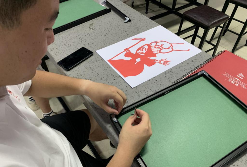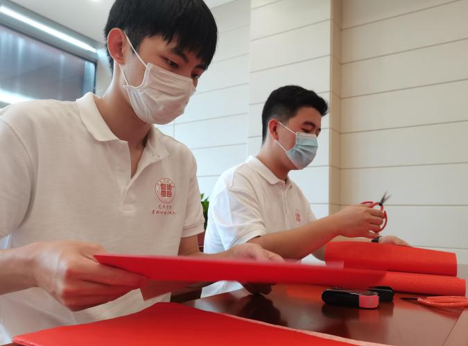 下午,暑期社会实践团成员们对已完成好的剪纸作品进行裱框及展板印刷,并进行相应的资料整理。