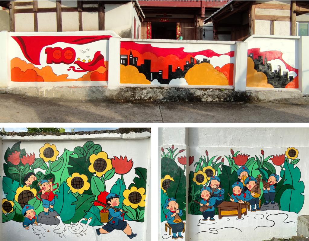 通过墙绘,将党的百年历程画在墙上,记在心里,用“红色”装扮美丽宜居乡村,获得了莘口镇领导干部的肯定与赞赏。多姿多彩的墙绘让原本老旧、空白的墙壁变得焕然一新,为党史学习教育提供丰富的素材,成为“天然课堂”。