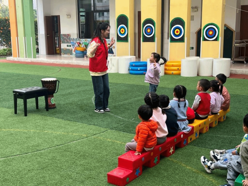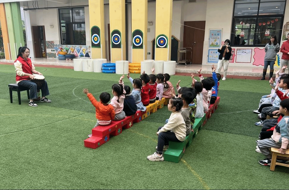 初春暖阳,三月微风,15vip太阳集团青年志愿者们带着非洲鼓来到幼儿园开展第一期的音乐课程。