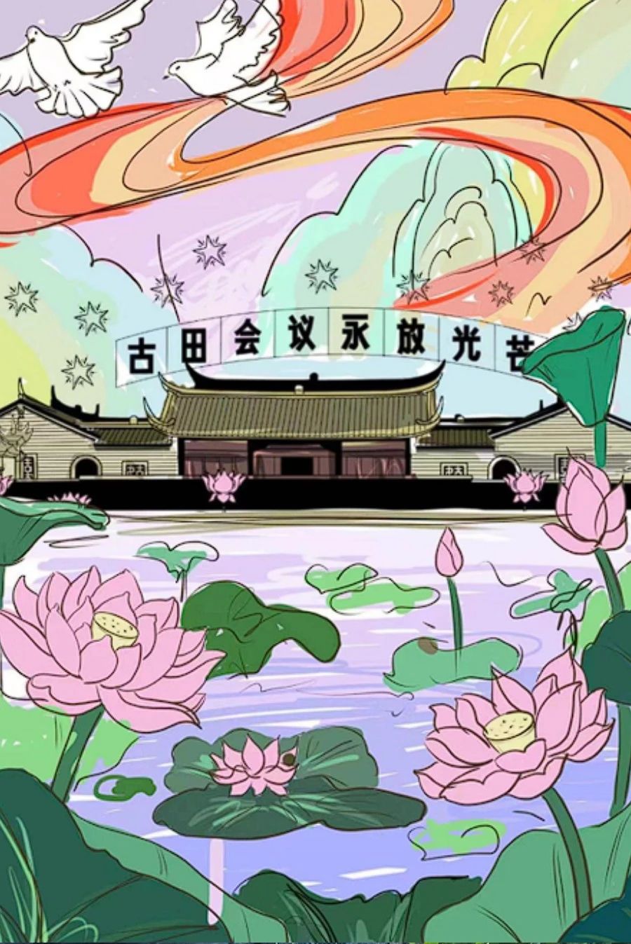 中华文明在福建开枝散叶,福建各地文化遗址如点点繁星散布,也衍生了闽剧、歌仔戏等具有地方特色的艺术形式,这些遗址与艺术形式承载着闽人的历史与记忆,实践队队员们以自己擅长的作画方式,描绘这些记忆。