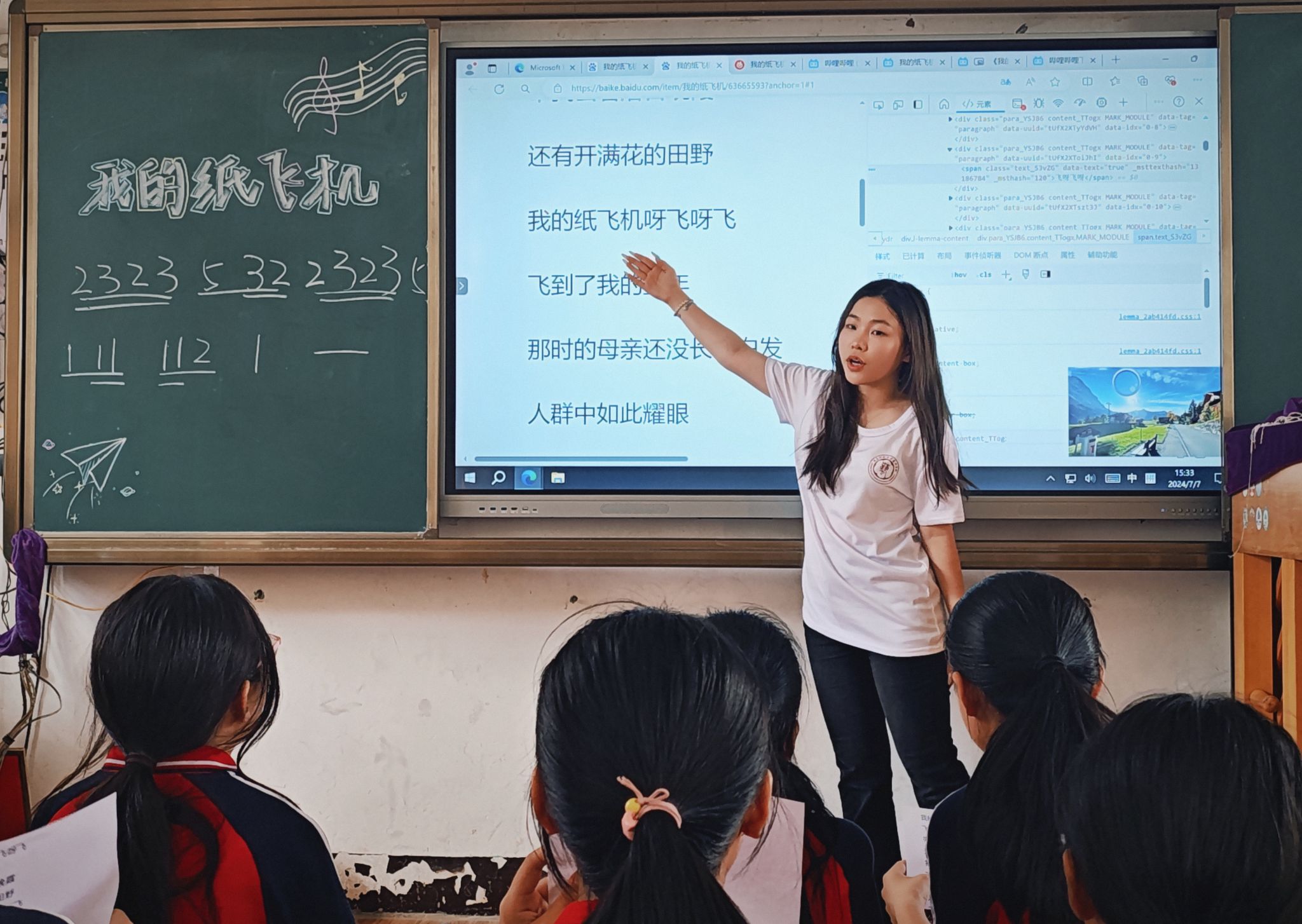 音乐组的实践队员们以MV《我的纸飞机》开场,向小营员们介绍了本期夏令营即将学习的音乐曲目,并带领小营员们以拍手、跟唱的方式熟悉这首歌曲。在实践队员们的认真讲解和细心引导下,小营员们逐渐克服胆怯和害羞,一起放声歌唱。