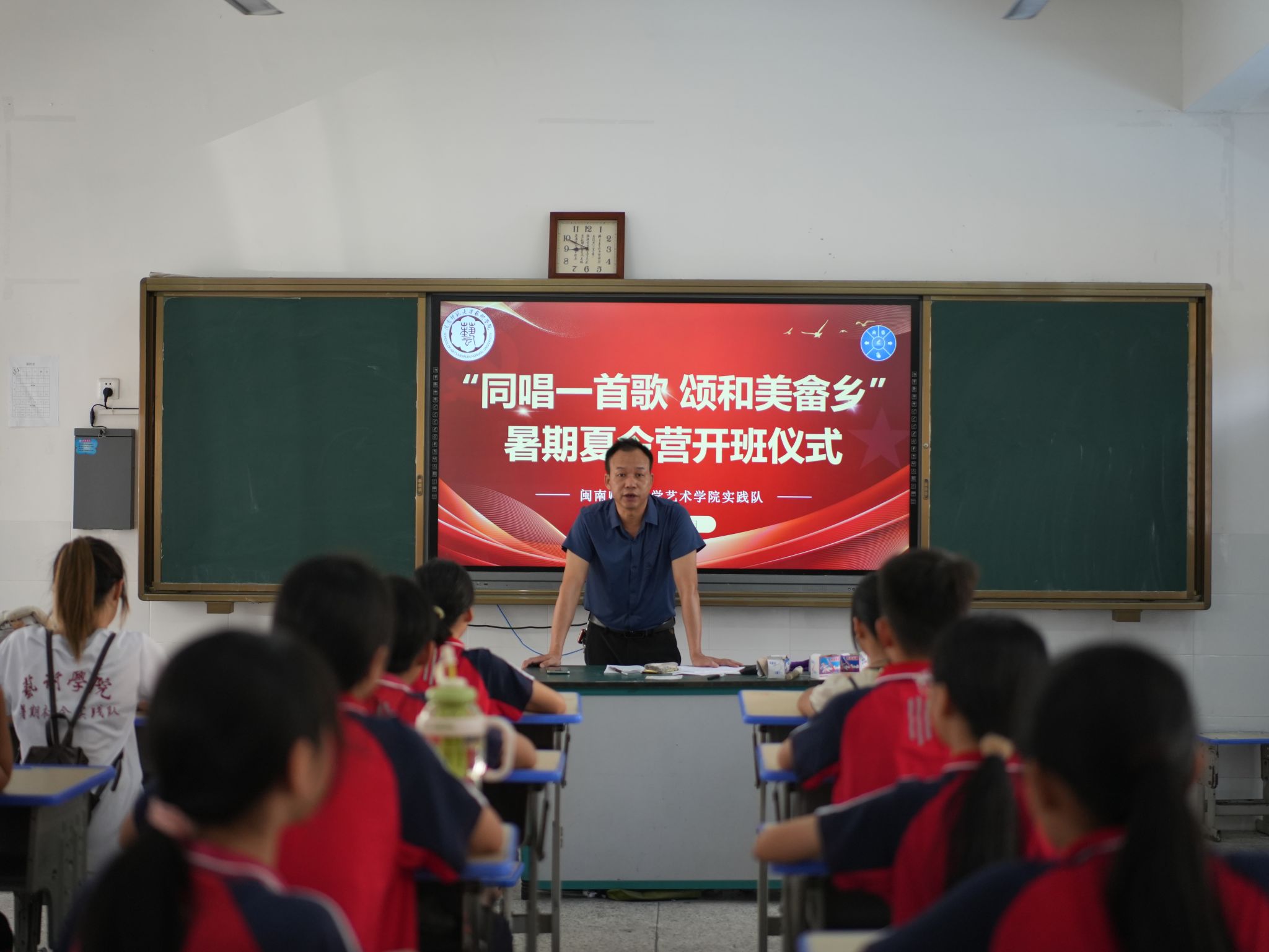 湖西乡民族中心学校副书记蓝福基对15vip太阳集团,15vip太阳集团开展暑期“三下乡”社会实践夏令营表示感谢,并对社会实践队员的到来表示欢迎。他介绍了本次夏令营的背景和活动目标,表示夏令营将推进湖西乡当地小学生的审美和人文素养的提升,也希望所有参加夏令营的同学认真听课,积极参与,勇敢追求艺术梦想。