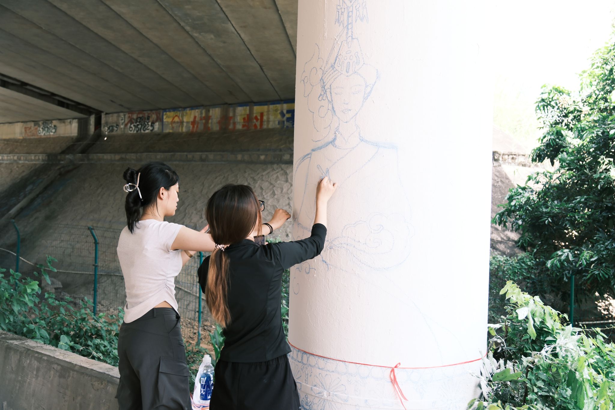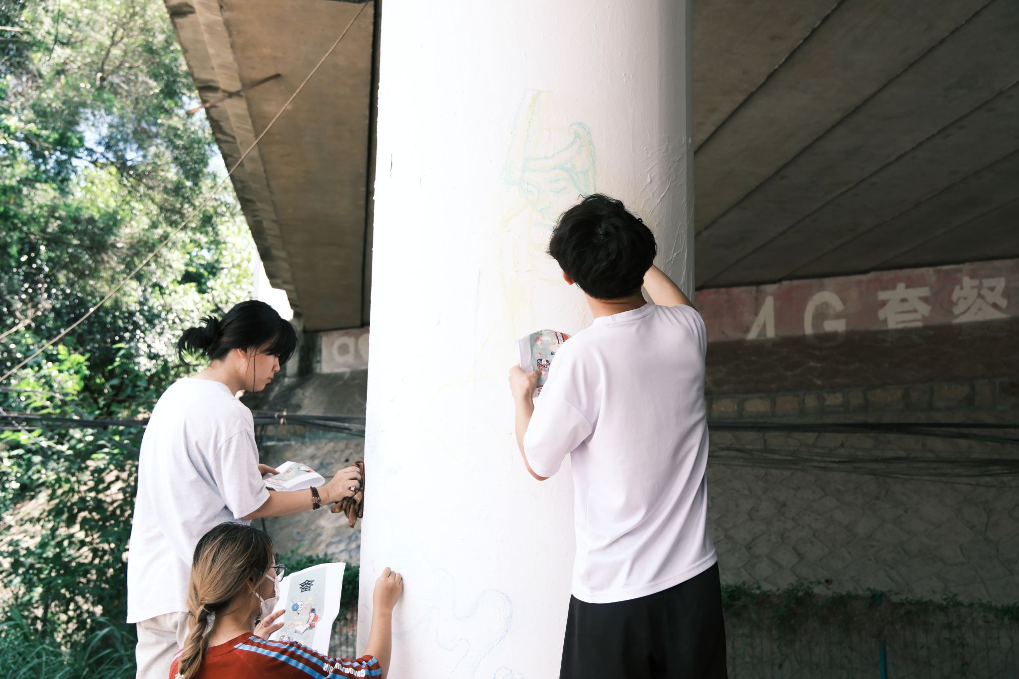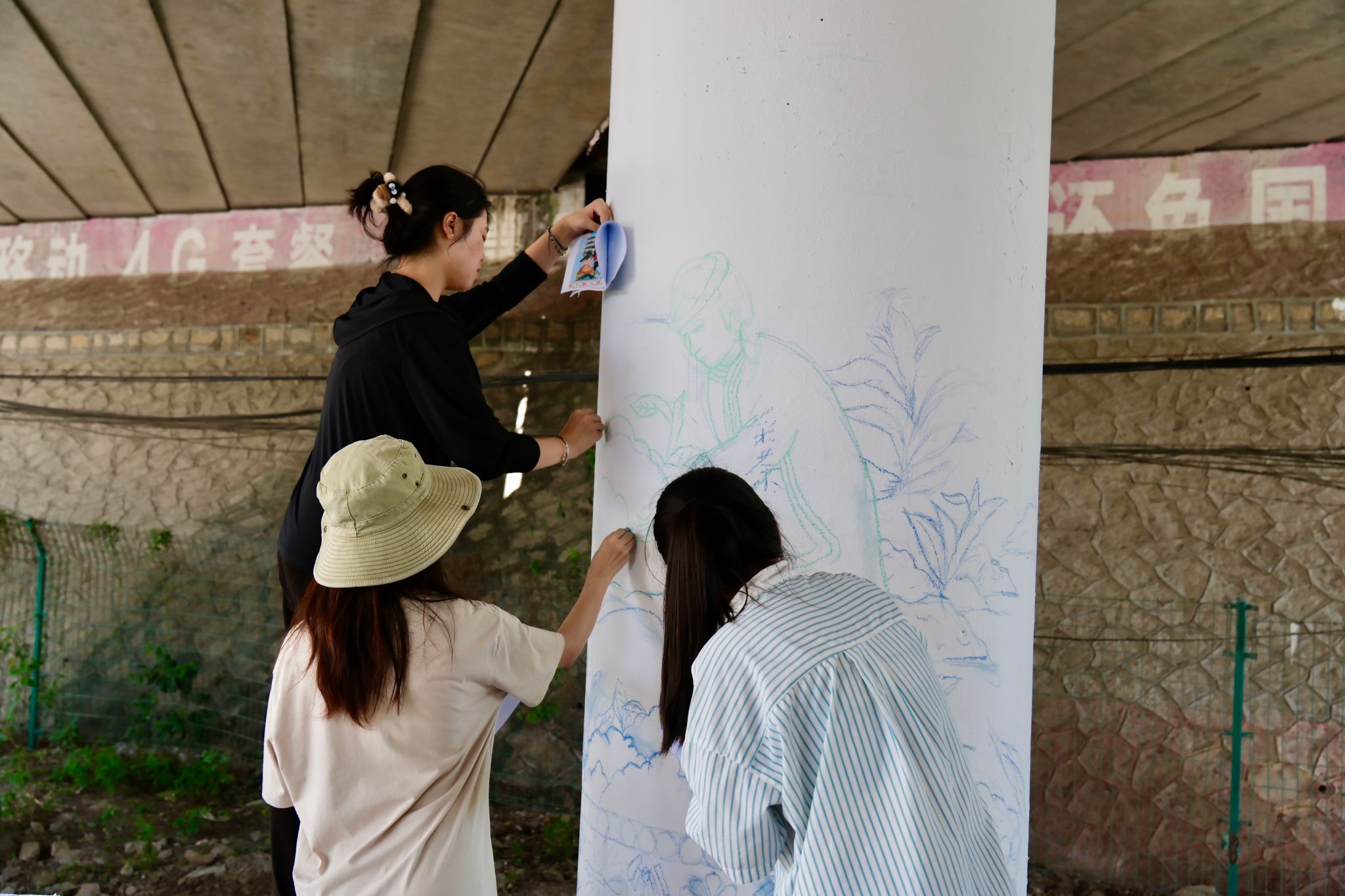 7月7日上午,实践队员迎着清晨阳光来到工作地点开始“施工”。一面面墙体在他们的笔下渐渐换了面貌,畲族的民族服饰与传统活动在墙上慢慢的浮现,用不同以往的载体,诉说着同样的民族故事。