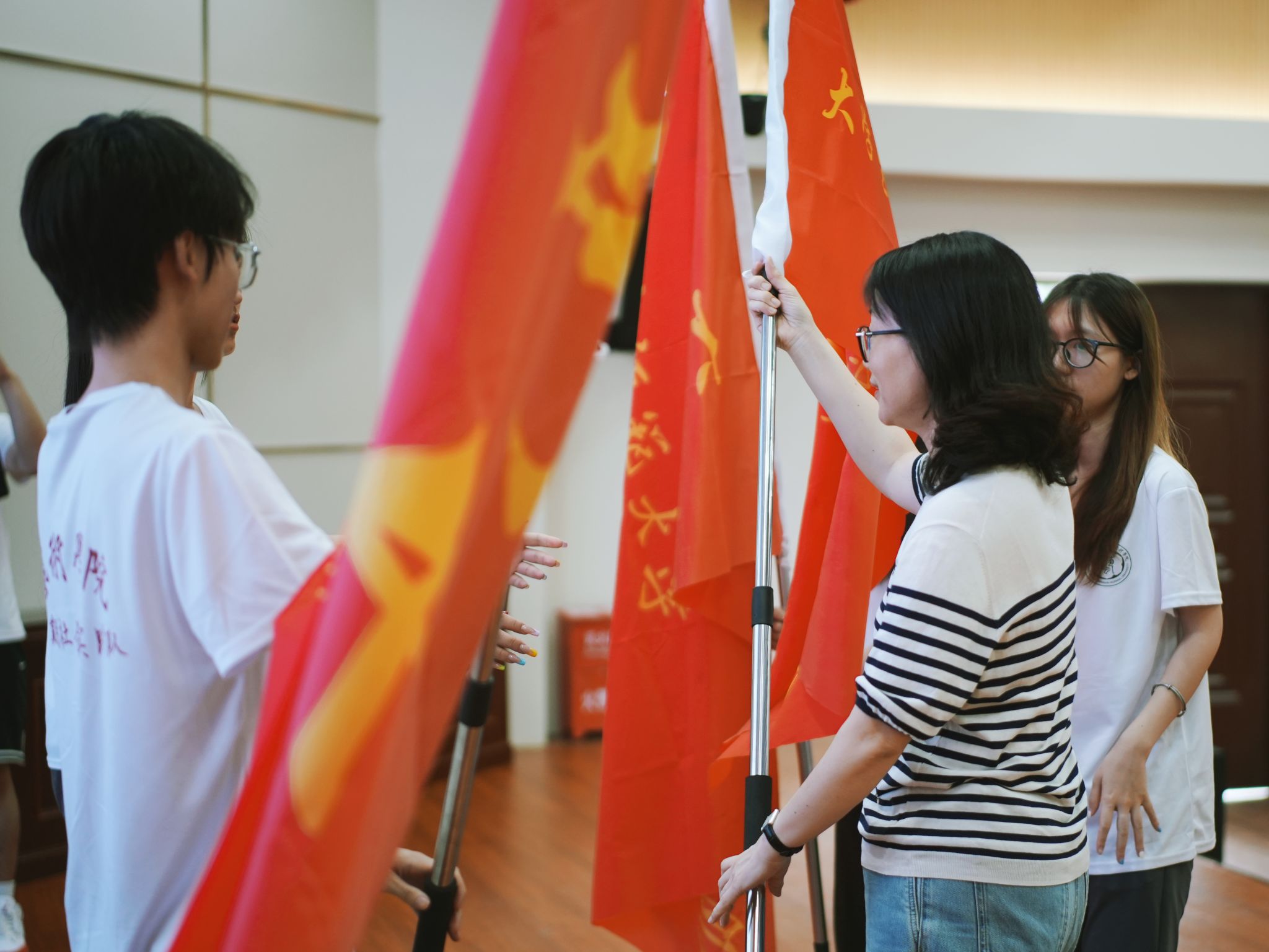 一面旗帜,一把火炬,点燃信念的星星之火,把青春的种子,洒向大地。党委副书记为社会实践队员代表授旗。旗帜不仅代表着荣誉和期望,更承载着实践队员们的梦想与责任。希望同学们共同努力,牢记初心使命,锤炼理想信念,增强实干本领,磨练坚强意志,在社会实践中展现出我院学生的良好精神风貌。