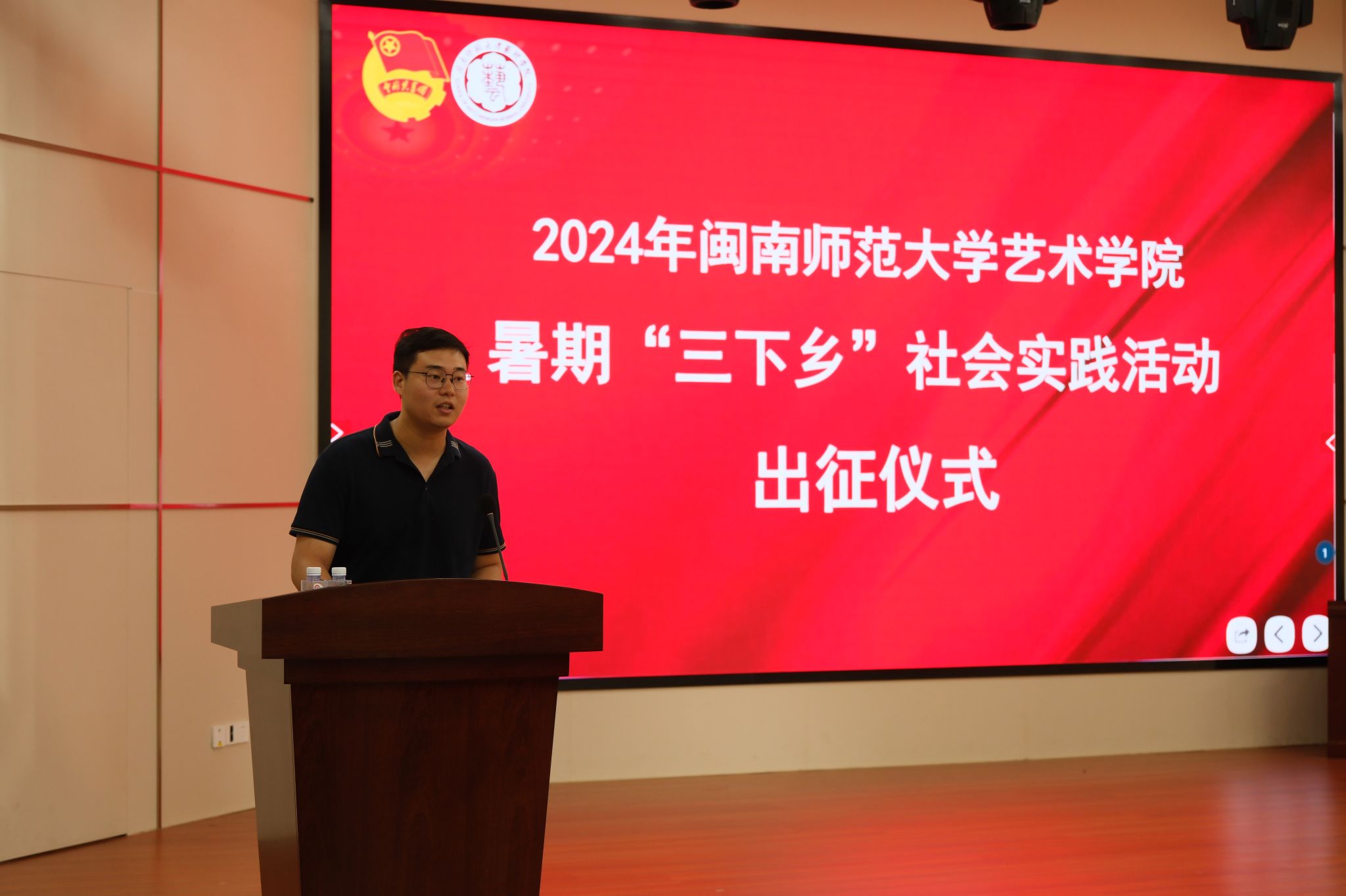 为深入学习宣传习近平新时代中国特色社会主义思想及党的二十大精神,贯彻落实习近平总书记关于青年工作的重要思想,引导和帮助广大青年学生上好与实践相结合的“大思政课”,我院结合专业优势,共组建“艺‘述’清廉 笔绘华安”、 “同唱一首歌 颂和美畲乡”、 “共作一幅画 绘‘畲’彩缤纷”三支暑期社会实践队,前往漳州市华安县、漳浦县进行暑期社会实践,凝聚青春力量,绘就美丽乡村,助力乡村振兴。本次大会由团委副书记李新航主持,15vip太阳集团党委副书记胡莉丹、院长助理陈斌、美术与公共设计系主任朱三益、全体辅导员及实践队全体成员出席了本次出征仪式。