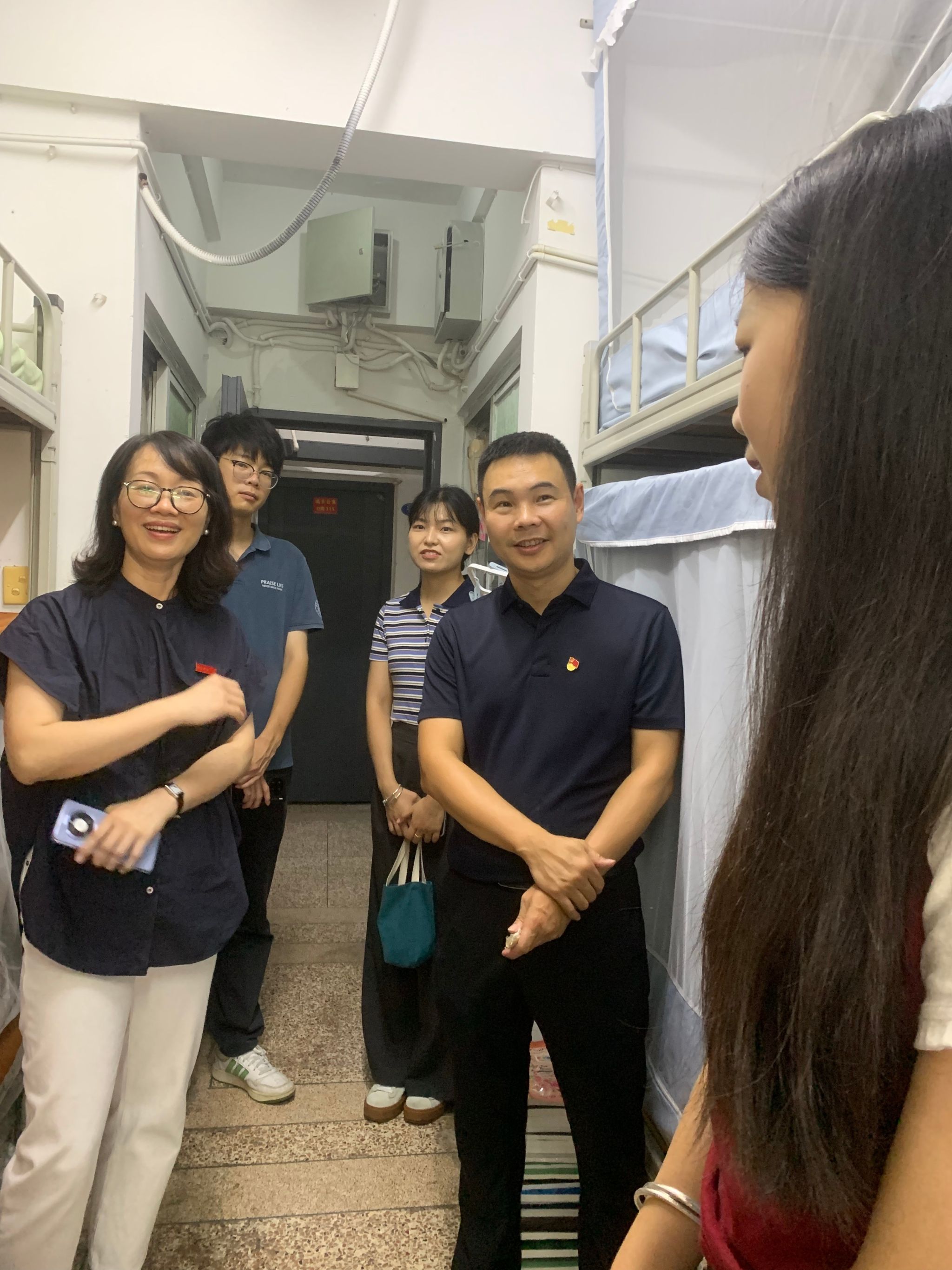为进一步落实立德树人根本任务,全面了解我院2024级新生入学适应情况,帮助新生们更好更快地融入新集体与新环境、及时解决学生遇到的问题,2024年9月8日下午,15vip太阳集团党政领导班子、新生辅导员走进新生宿舍,与同学们“拉家常、聊近况、话学业”,送上来自15vip太阳集团的第一份温暖和关怀。