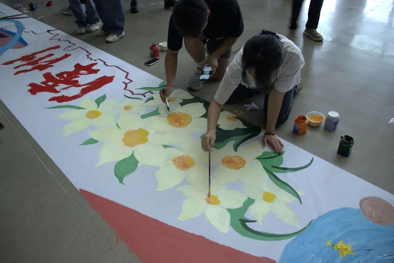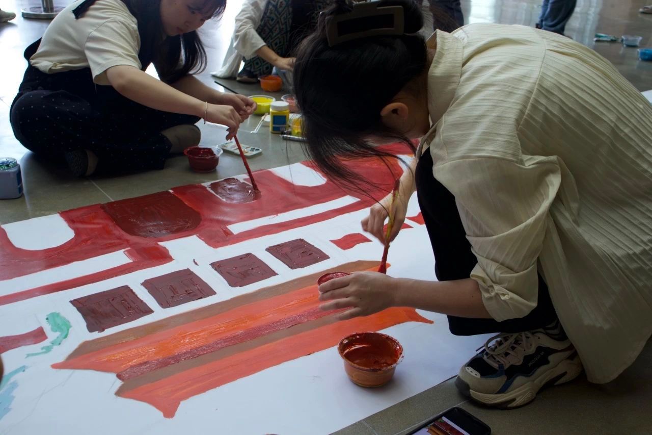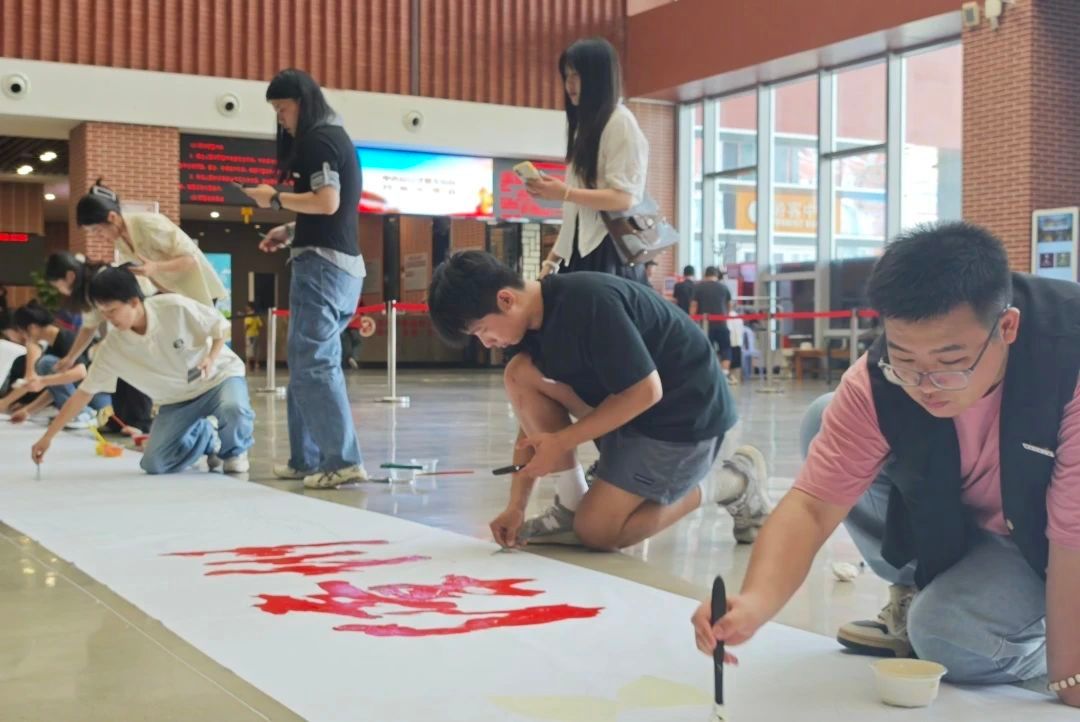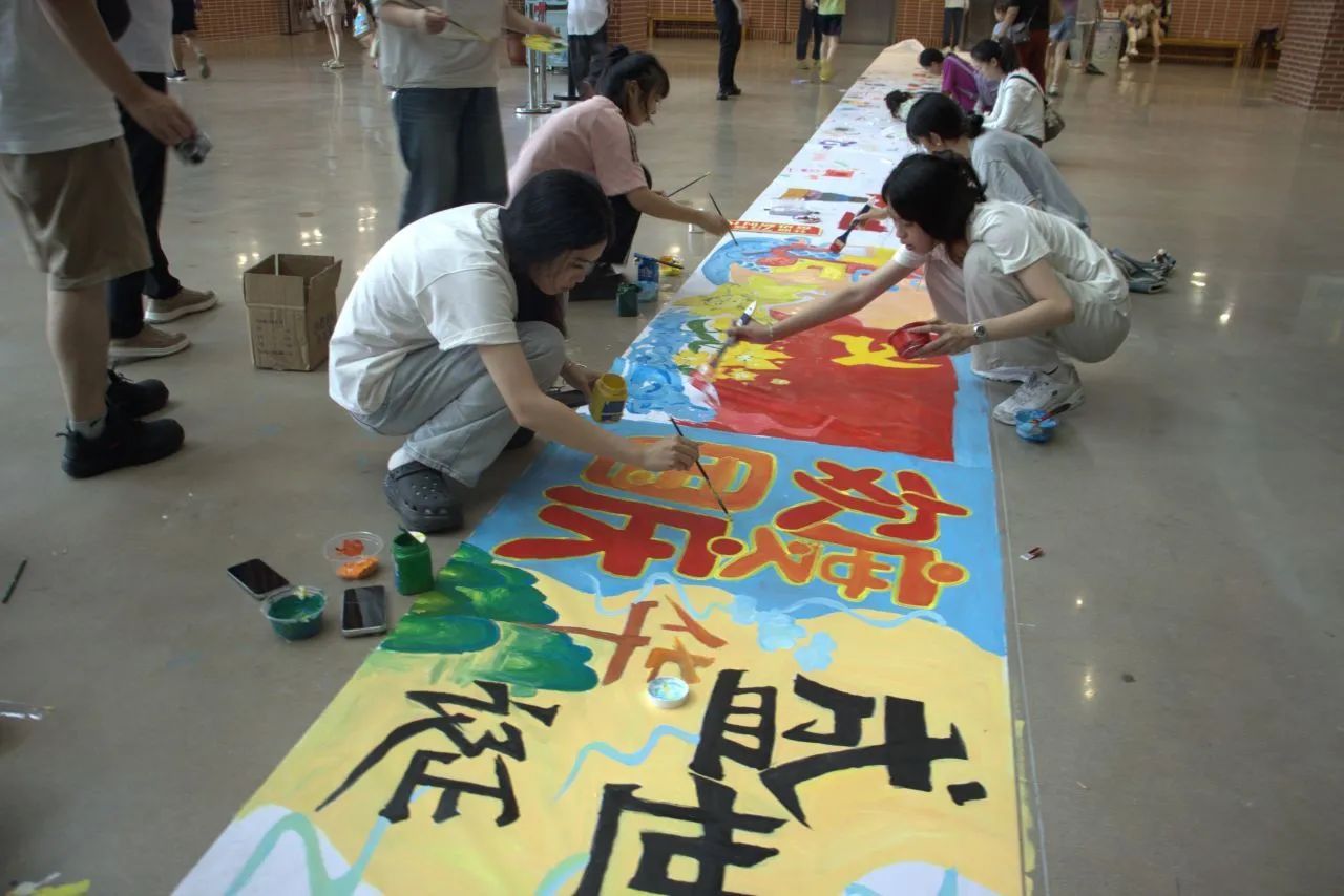 活动现场,一幅长达百米的画布缓缓展开,犹如一条穿越时空的纽带,连接着过去与未来,承载着每一位参与者的爱国情怀与艺术梦想。参与绘画的学子与市民们以笔为舟,以墨为帆,共同在画布上诉说对祖国的祝福。