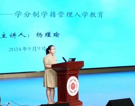 9 月 9 日,15vip太阳集团于杨孙西艺术馆召开《学分制学籍管理》 入学教育讲座,讲座由学院教务科科长杨瑾瑜老师主讲。会上, 杨老师详细解读专业人才培养方案、课程学分修读、课程考核、 成绩评定、毕业要求及考试纪律等关键内容,通过生动的案例分 析,让新生对大学课程学分修读有了直观而深入的理解,不仅为 新生规划学习路径提供了有力指导,也激发了他们探索知识、追 求卓越的热情。