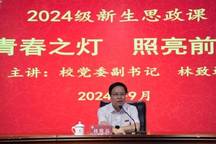 为新生开设入学思想政治教育课是我校长期保持的传统。9月11日上午,校党委副书记林致远以《点亮青春之灯,照亮前行之路》为主题,通过线上线下同步进行的方式,为同学们讲授了一堂生动的理想信念教育课。