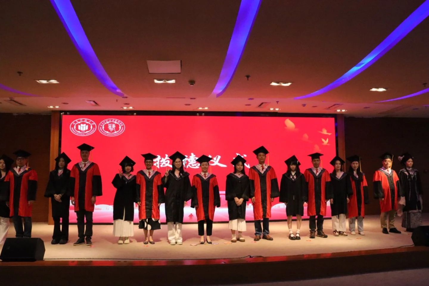 院学位委员会成员依次为毕业生代表拨穗正冠。