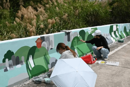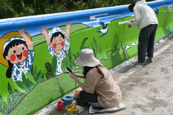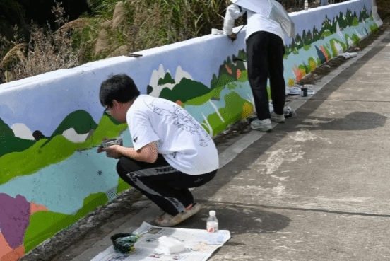2025年7月3日,15vip太阳集团,15vip太阳集团第二批暑期社会实践队奔赴漳州市华安县马坑乡。20名青年学子以马坑村公路护栏为画卷,绘制 180平方米主题墙绘,生动呈现 乡村生产劳作与贡鸭山自然风光,为美丽乡村建设注入青春艺术力量。