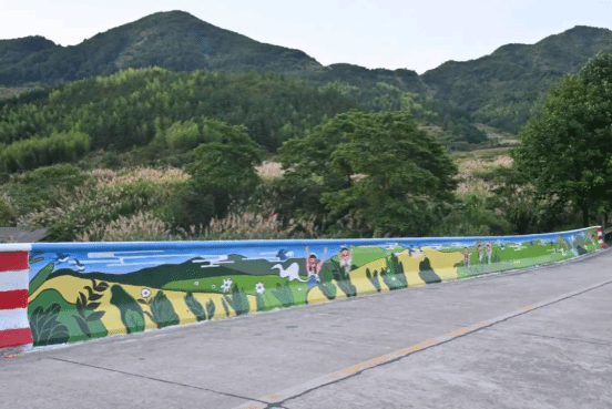 实践团队紧扣 “农耕文明·生态贡鸭” 双主题,凝练马坑乡人文与自然精髓:墙绘中,农民梯田躬耕、护林人巡山足迹跃然壁上,鲜活再现乡土生产图景;贡鸭山苍翠林海、蜿蜒溪涧通过青绿山水笔法淋漓展现,彰显华安生态底蕴。180平方米作品将公路护栏转化为 “流动的乡土文化长廊” ,使基础设施蜕变为承载地域记忆的公共艺术载体,显著提升马坑村主干道风貌品质。