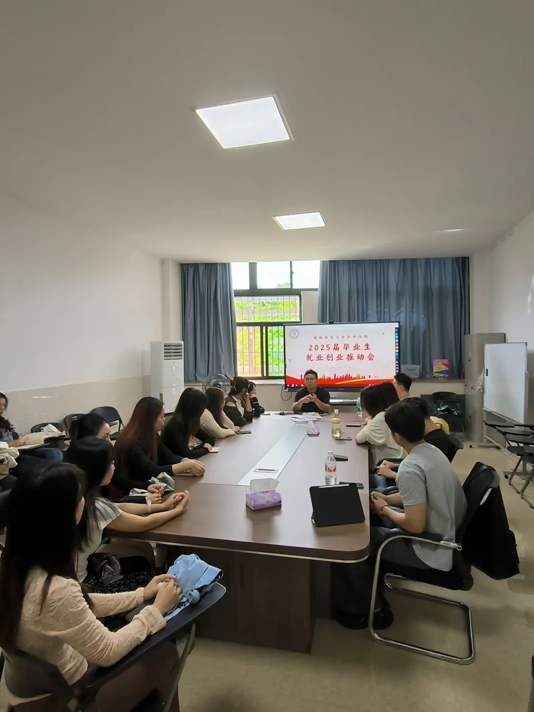 为帮助应届毕业生做好职业规划,毕业班辅导员李新航老师与杨惠静老师分别召开2025届硕士毕业生和本科毕业生就业创业主题班会。一方面他们为应届毕业生深入解读了国家及地方针对艺术专业毕业生的就业创业政策,介绍了近期各类招聘会、双选会信息以及学院通过访企拓岗、校企共建等途径为毕业生提供的就业服务平台与资源。另一方面,他们还详细分析当前就业市场的多元化趋势,为应届毕业生分享实用求职技巧,涵盖寻求合适岗位、简历优化、面试礼仪等,鼓励毕业生树立正确择业观,把握优质资源,实现高质量就业。