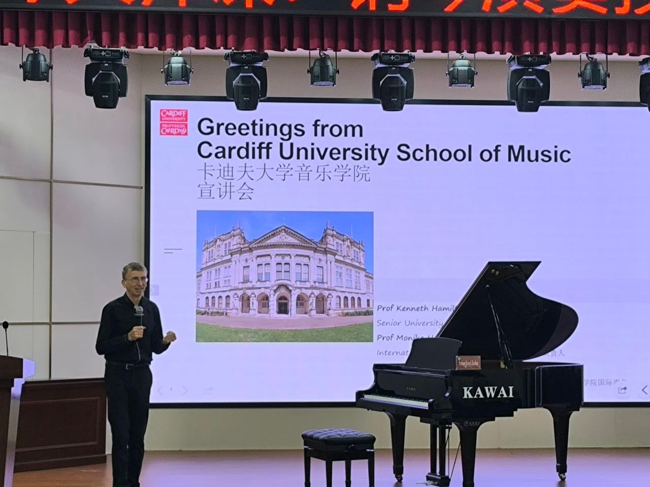会上,卓越教授详细地介绍了卡迪夫大学音乐学院的学术环境与课程结构情况,认真耐心地解答了同学们的各类提问,与我校相关学科负责人探讨了音乐相关专业开展短期交流、师生互换、学生联合培养项目等合作交流的可能性,期待进一步的深化交流与合作。