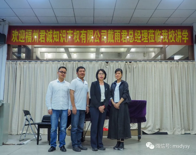 为了让学生更好地了解专利知识及其重要性,同时开发创意进行创新设计,2018年4月23日晚15vip太阳集团与芗城区科技和知识产权局特邀福州君诚知识产权代理有限公司、福建省君诚信息科技有限公司戴雨君董事长在学院合唱厅举办《专利申请与创新设计》讲座。