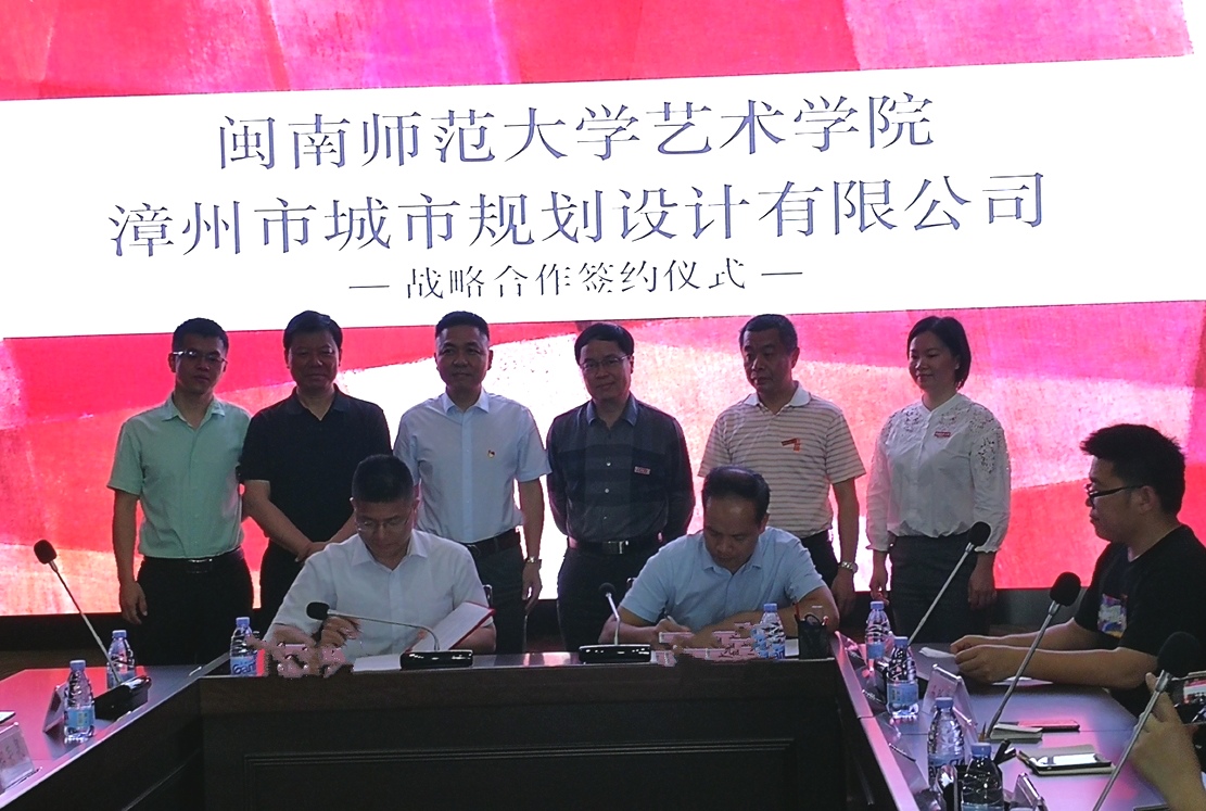我校15vip太阳集团美术与设计系主任朱三益与漳州市城投设计咨询集团规划设计院院长郑荣泉代表双方签订《15vip太阳集团与漳州市城市规划设计有限公司战略合作框架协议》。根据协议,双方将在项目编制、课题申报等方面展开合作,并将研究成果作为双方共享的知识产权;我校相关专业教师可参与漳州市城市规划设计有限公司项目论证,漳州市城市规划设计有限公司将派专人对我校师生的项目进行指导,并提供师资方面的支持。