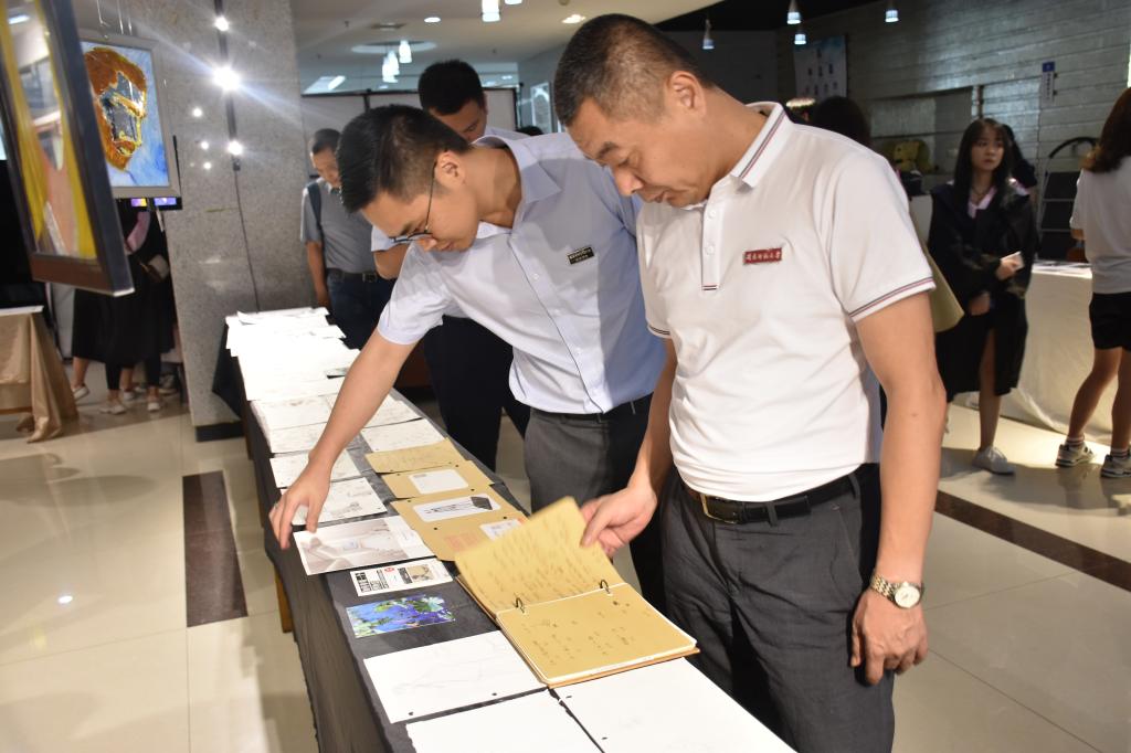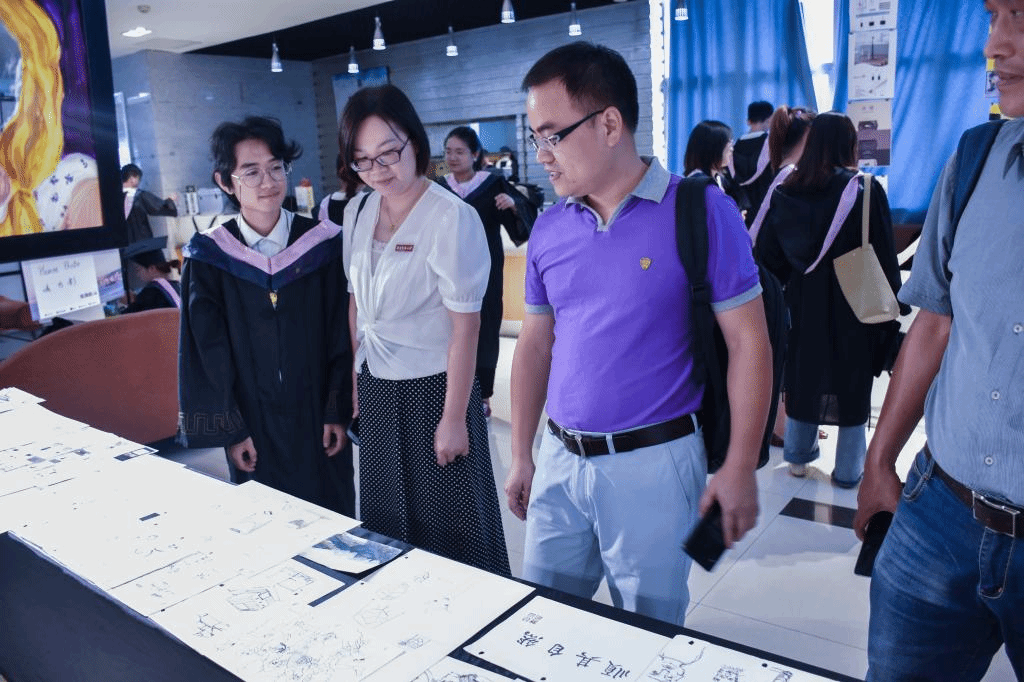 仪式结束后,毕业生在逸夫图书馆观看了毕业生张旗航的个人展,并与老师合影留念。