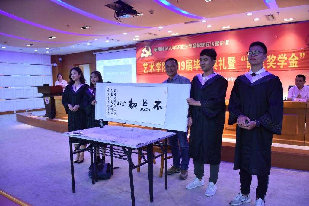 汪世基老师现场题字赠送给2019届毕业生,愿他们未来前程似锦,大展宏图。台下毕业生思绪万千,感慨颇多。