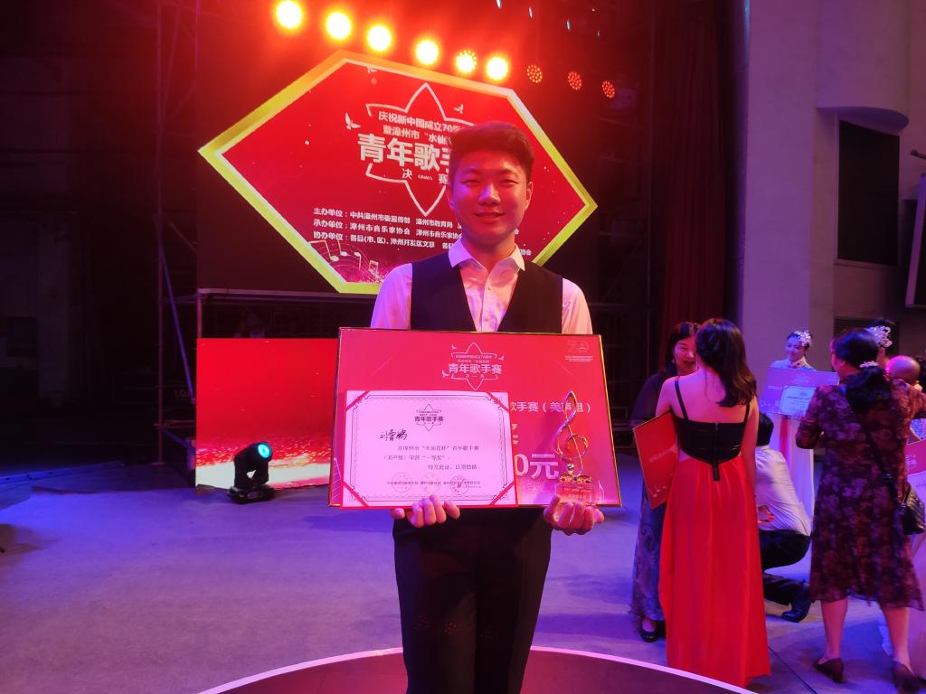 10月28日晚,庆祝中华人民共和国成立70周年暨漳州市“水仙花杯”青年歌手赛决赛在漳州市人民剧场落幕。我院2016级音乐学(师范)专业学生刘霄鹏荣获美声组一等奖。刘霄鹏同学也是本次赛事唯一获奖在校学生。