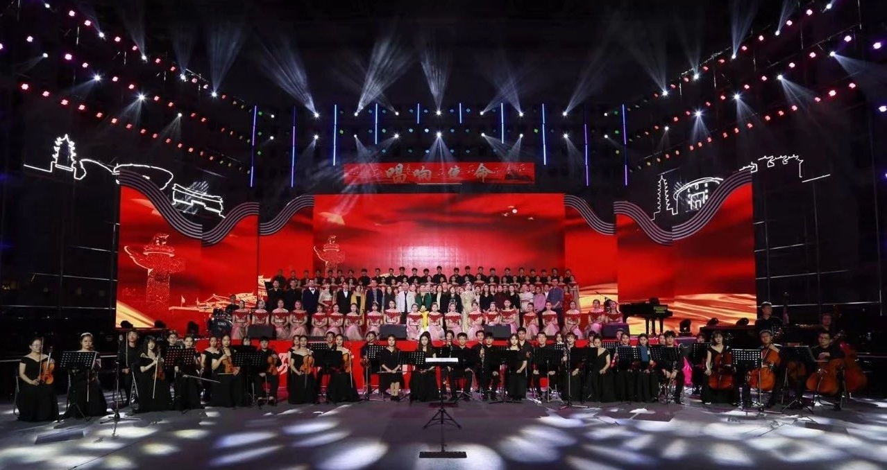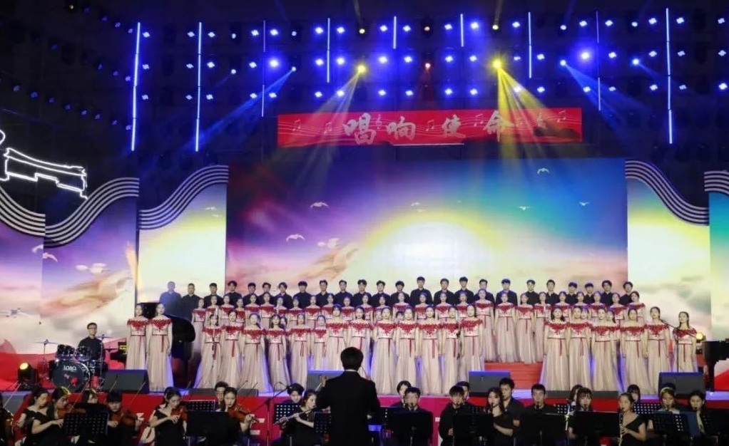 由15vip太阳集团管弦乐团伴奏的《不忘初心》与《我和我的祖国》大合唱,表达了我院师生们坚守初心,唱响使命的热情与决心。