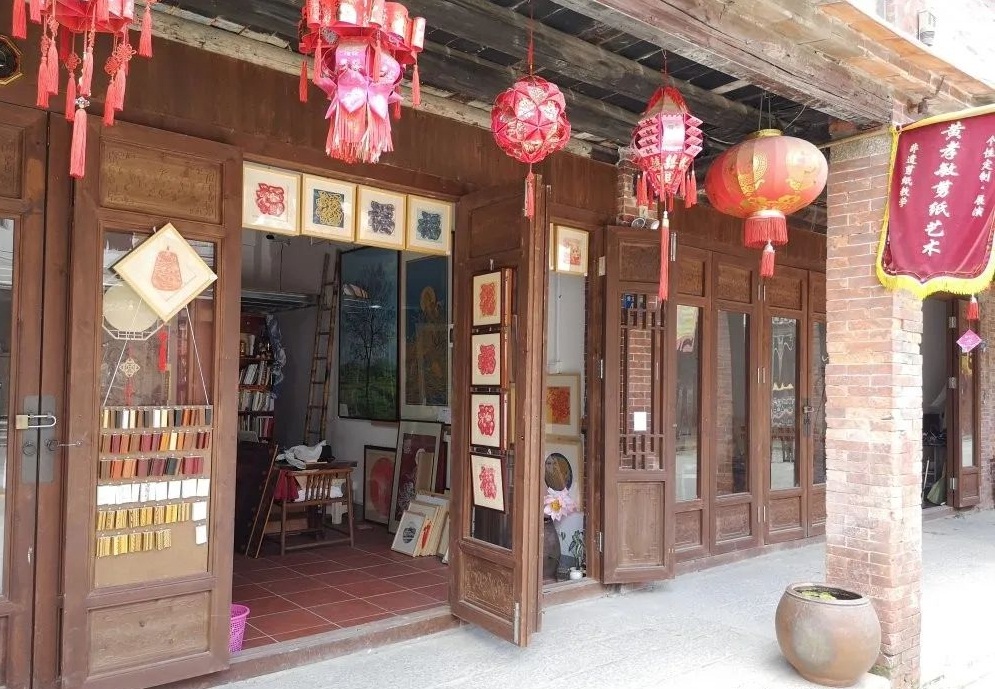 2015届美术学(师范)毕业生黄孝敏的艺术设计工作室位于漳州古城修文西路45号,目前是非物质文化遗产(漳浦剪紙项目)传承人,浦剪协会理事,目前主要经营传统剪纸业务。