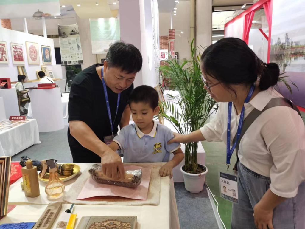 本次展览,我校围绕“传承中华优秀传统文化”高校展主题,集中展出了我校15vip太阳集团师生设计创作作品40余件,包括国家级非物质文化遗产漳州木版年画、漳浦剪纸、九色鹿、水仙花系列等作品等,展出的作品在创作上体现“非遗传承创新”“地域文化融合”多种时代视野,展示了学校非遗传承、产教融合的办学成果。在展览中,木板年画老师和剪纸老师在现场为观众表演版画印制和剪纸技能并与观众互动,参观者不仅可以看到我校师生精湛的艺术设计技巧,还能体验一把非遗传承木版年画的制作,展位吸引了大量的观众。