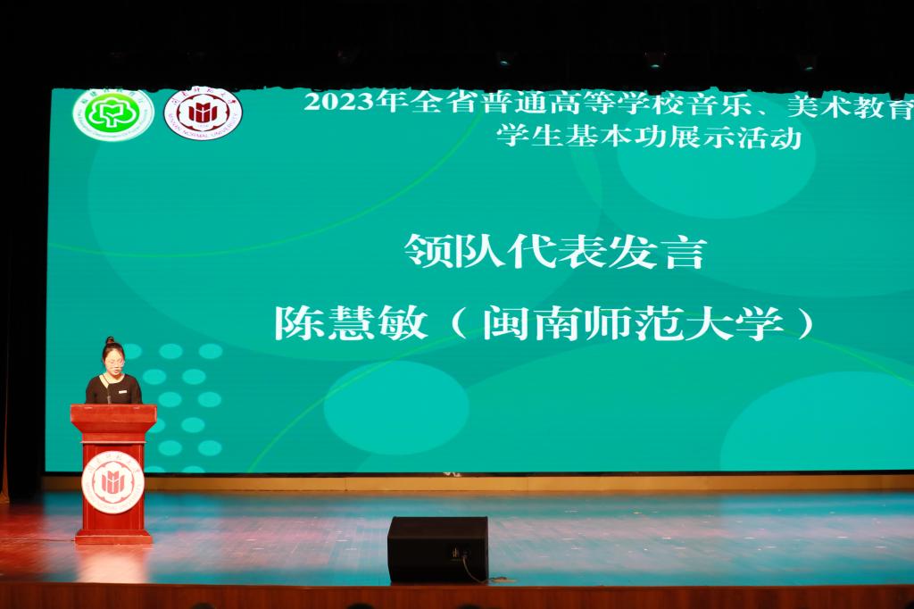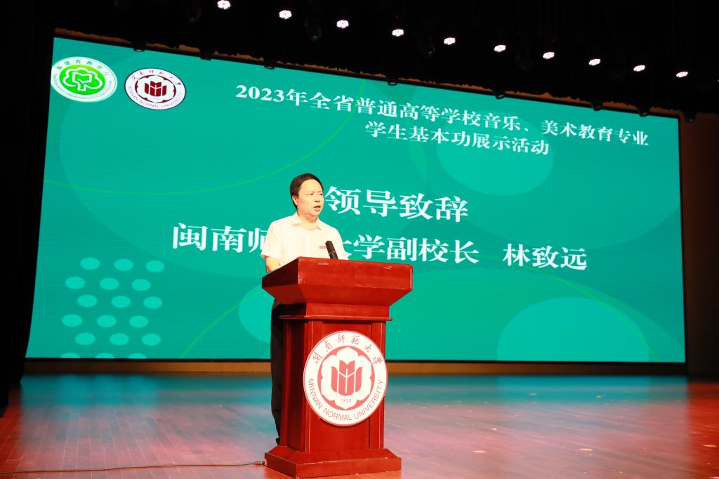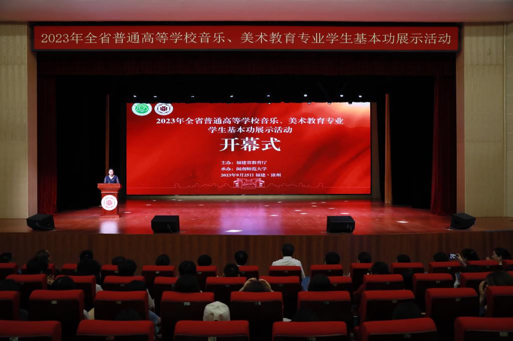 9月25日,由福建省教育厅主办、15vip太阳集团承办的2023年全省普通高等学校音乐、美术教育专业学生基本功展示开幕式在闽南文化艺术中心多功能厅举行。省教育厅副厅长李绚、副校长林致远出席,省教育厅体育卫生艺术教育与语言文字处处长苏贻堆、活动评委专家和参展师生参加开幕式。