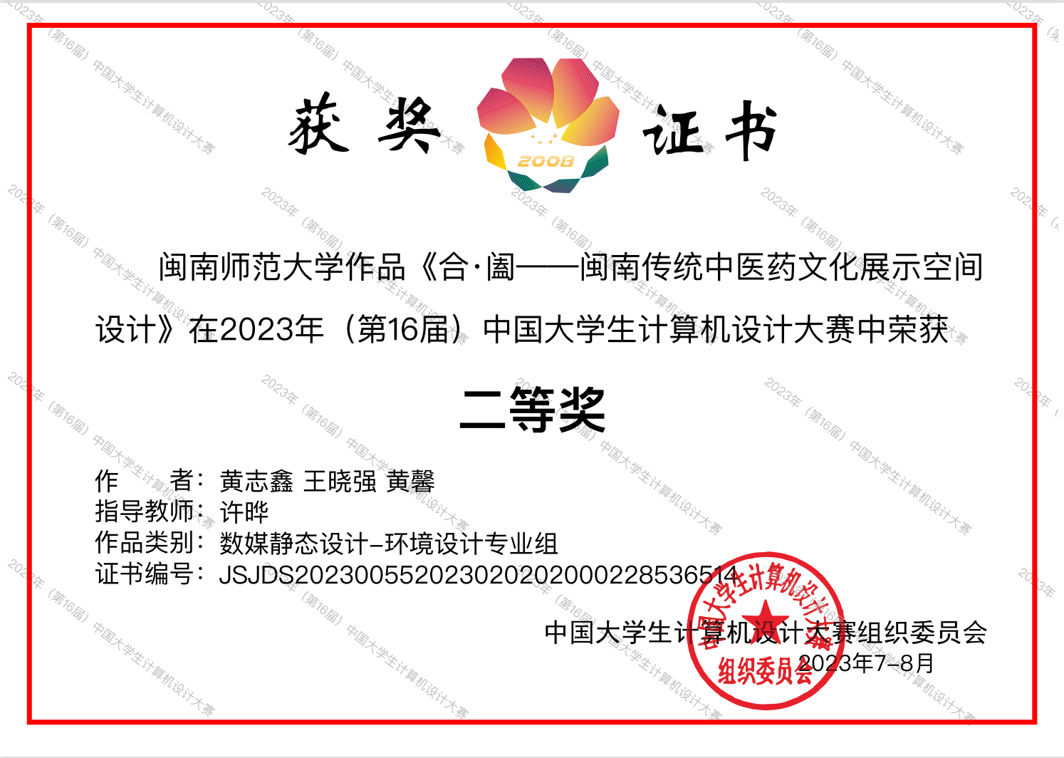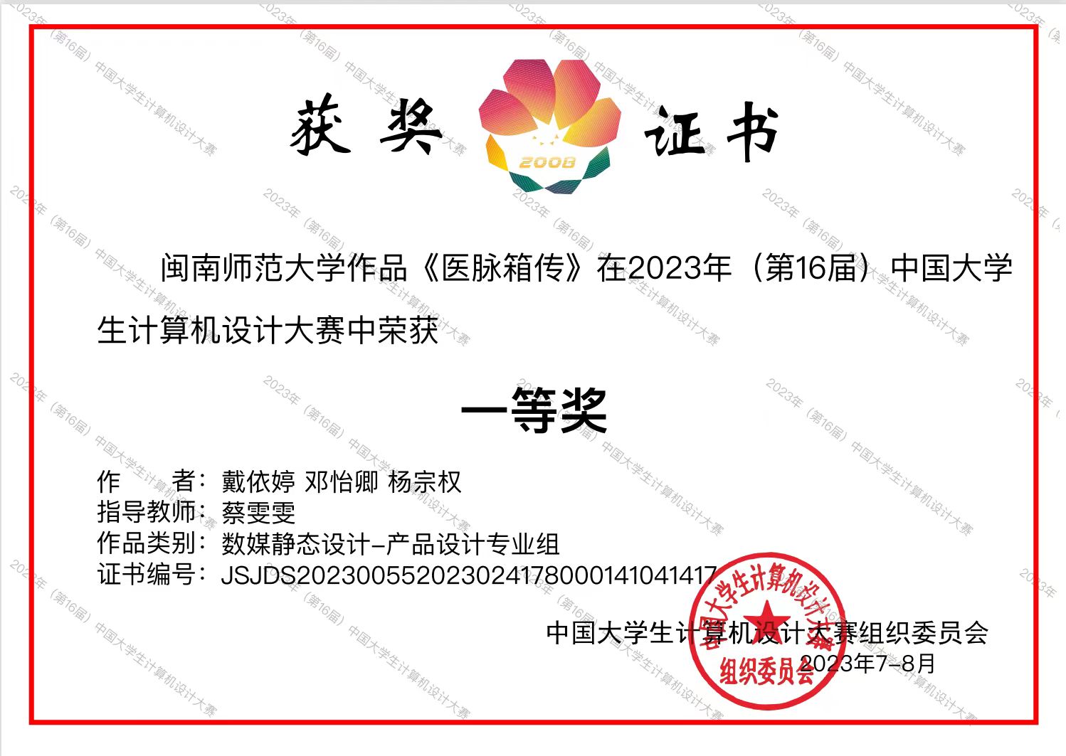 日前,由中国大学生计算机设计大赛组织委员会主办的2023年(第16届)中国大学生计算机设计大赛获奖名单揭晓,我校荣获2023年(第16届)中国大学生计算机设计大赛一等奖,15vip太阳集团蔡雯雯老师指导、学生戴依婷、邓怡卿、杨宗权创作的作品《医脉箱传》在数媒静态设计——产品设计专业组荣获一等奖,许晔老师指导、学生黄志鑫、王晓强、黄馨创作的作品《合▪阖——闽南传统中医药文化展示空间设计》荣获二等奖。