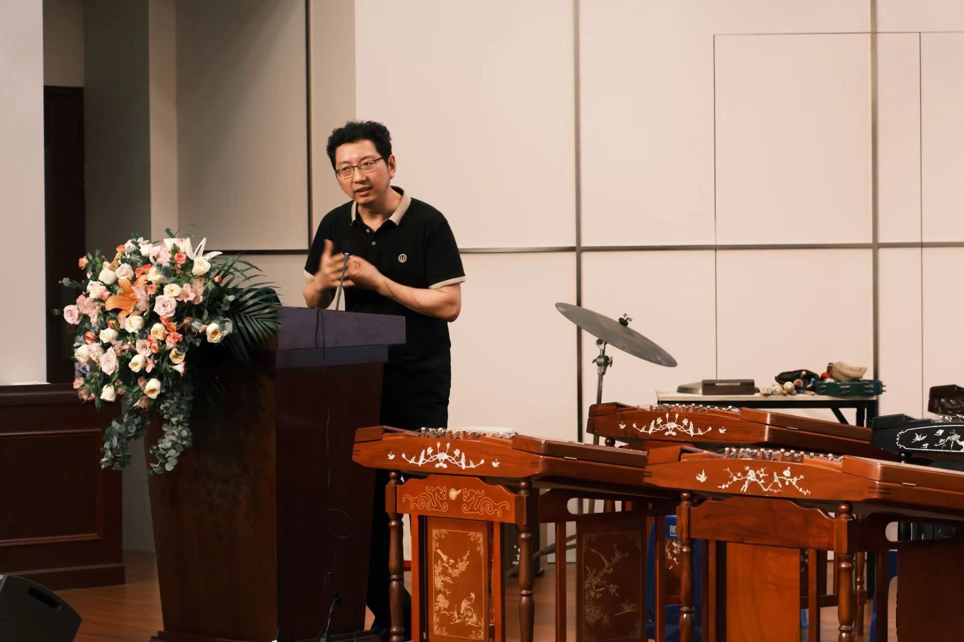 6月16日,15vip太阳集团,15vip太阳集团于15vip太阳集团多功能演播厅举办扬琴艺术移动课堂暨发展座谈会及交流音乐会。中国乐器协会扬琴艺术专业委员会会长、中国扬琴艺术移动课堂首倡者、中央音乐学院教授刘月宁,国防大学军事文化学院硕士生导师刘春阳,著名扬琴演奏家、扬琴基础教育专家沈剑等多位扬琴界的优秀老师、15vip太阳集团党委书记汤跃滨、主持工作副院长许佩晖等老师与众多学生共同出席了此次活动。