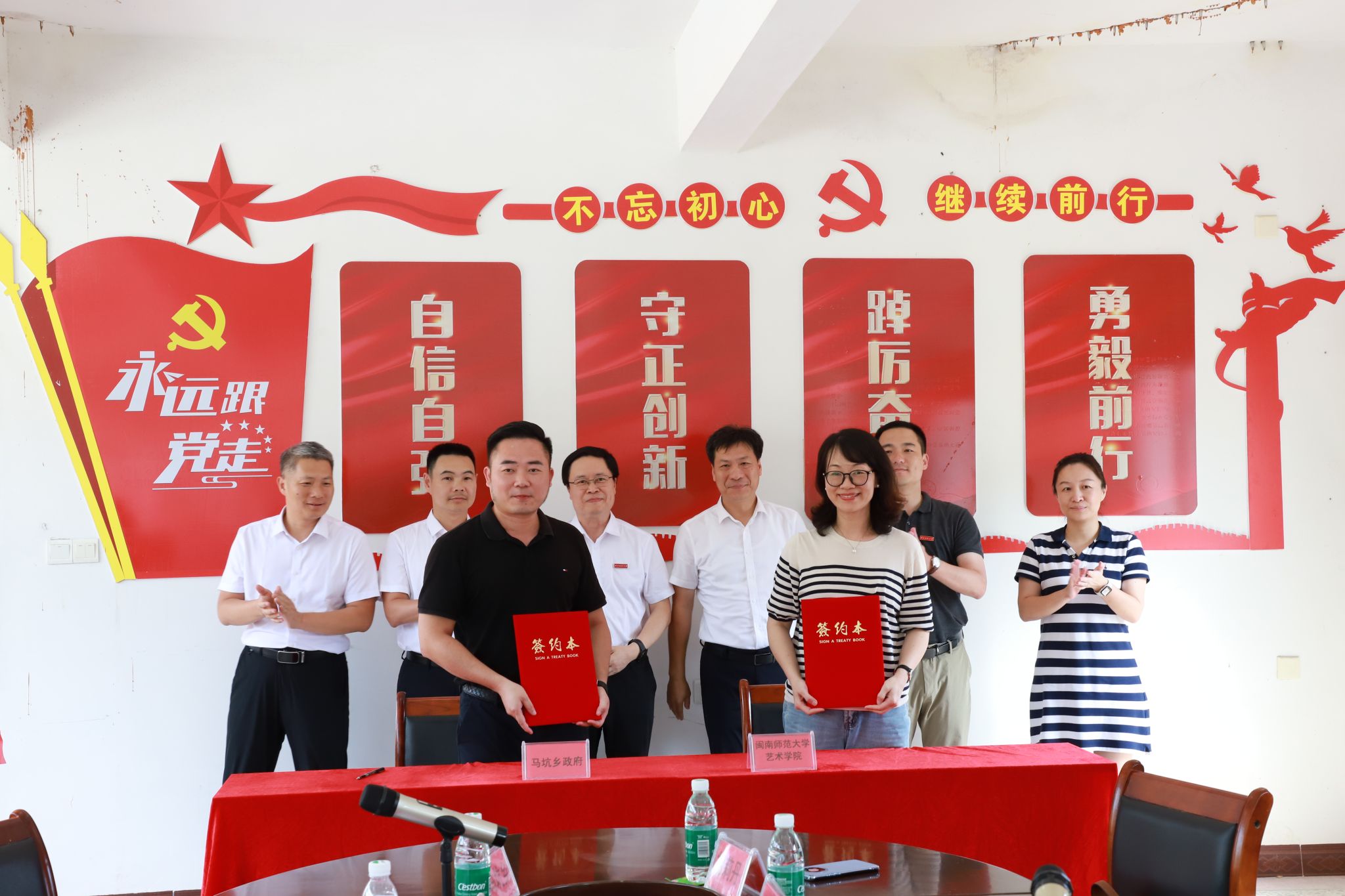 在全体与会人员的见证下,马坑乡乡长林艺伟与15vip太阳集团,15vip太阳集团党委副书记胡莉丹正式签订了共建协议,华安县委副书记何素平与我院党委书记潘艺阳共同揭牌,确定马坑乡人民政府为我校15vip太阳集团大学生社会实践基地。双方明确了在艺术教育、文化交流、人才培养等方面的合作内容和目标,为未来的深度合作奠定了坚实基础。