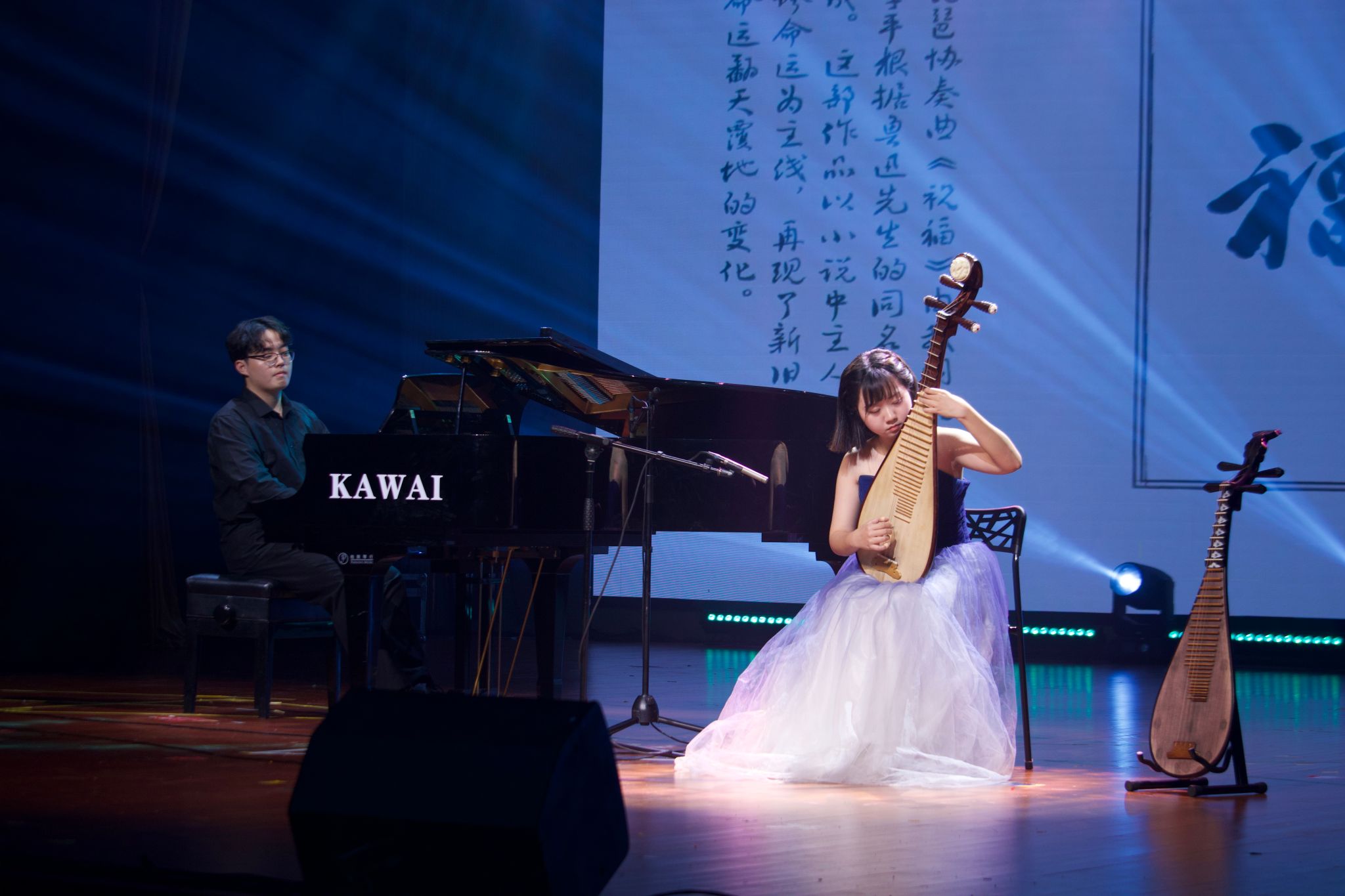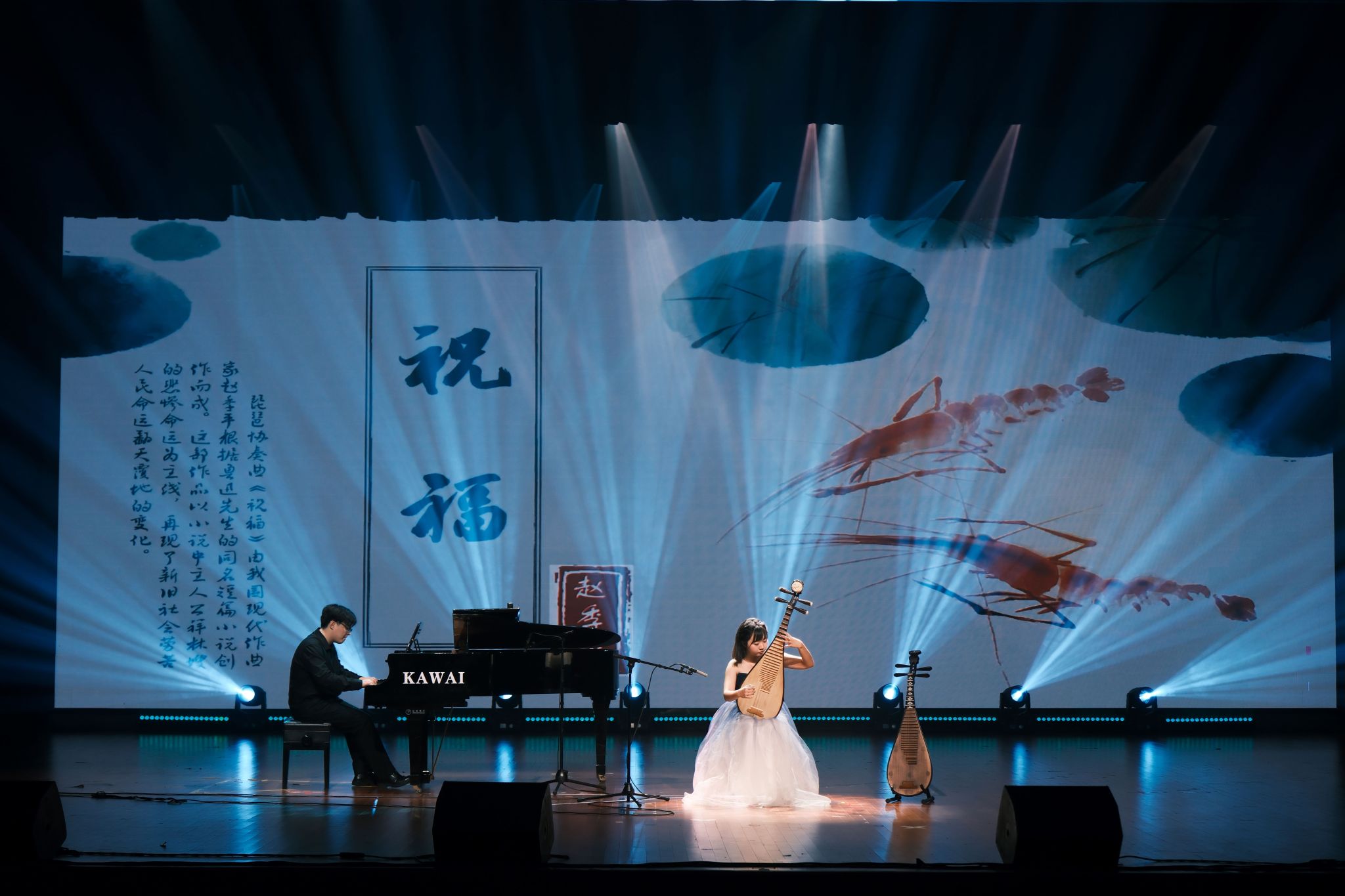 协奏曲《祝福》分别以钢琴的浑厚与琵琶的清脆,颂扬了黄河的壮阔与祖国的繁荣昌盛。