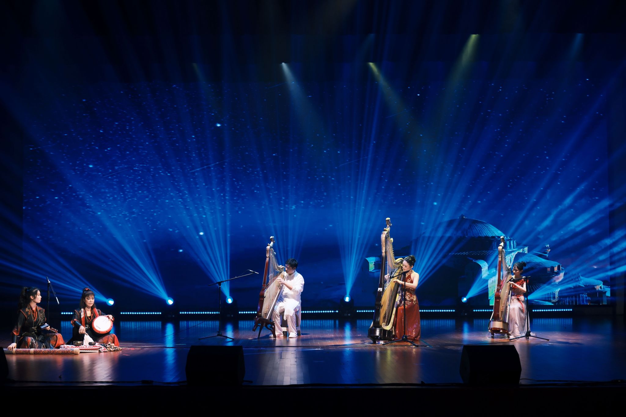 箜篌重奏《楼兰追梦》引领观众穿越时空隧道,重温古丝绸之路的辉煌与梦想。