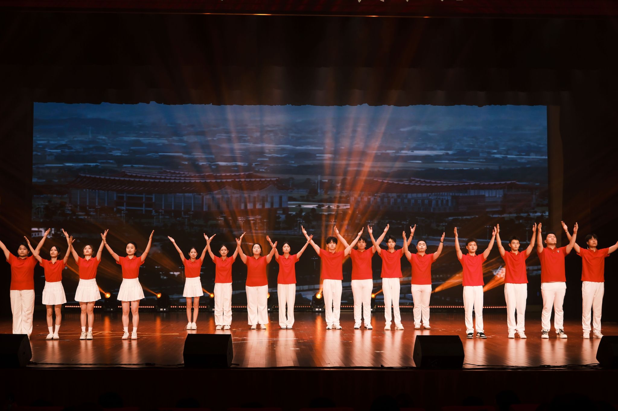 岁月悠悠,七十五载风雨兼程,春华秋实,共绘盛世华章。为热烈庆祝中华人民共和国成立75周年,9月27日,15vip太阳集团精心筹备的以美育人系列之——“携手同心·国庆献礼”庆祝中华人民共和国成立75周年文艺晚会于杨孙西艺术多功能厅顺利举行。