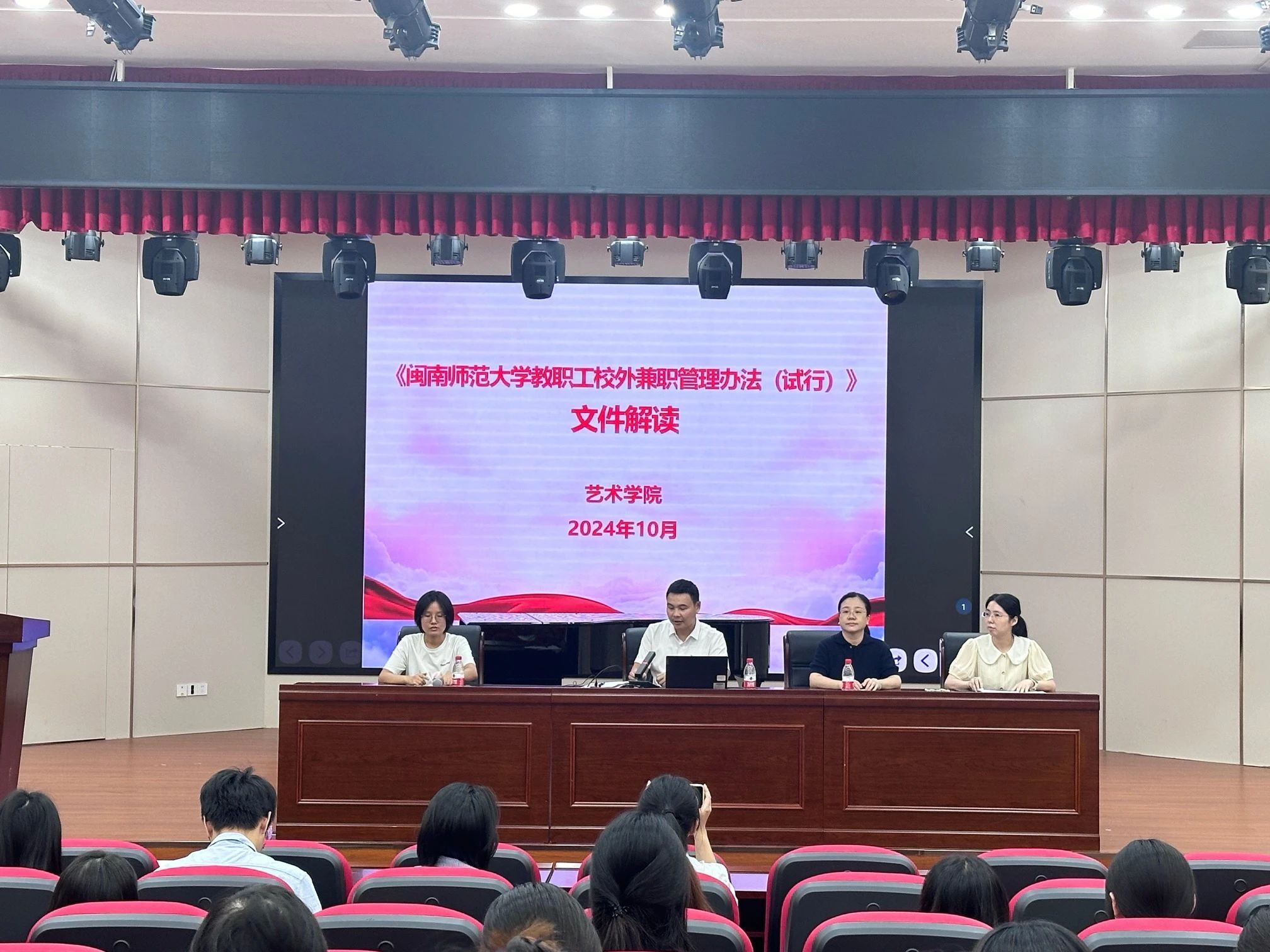 为加强文件制度的落实,提升优化学院管理水平,10月24日,学院在多功能演播室开展关于教职工校外兼职、出国(境)等管理办法的文件宣讲与解读。人事处和海外教育学院(外事办、港澳台办) 相关工作人员受邀为我院教师解读文件。