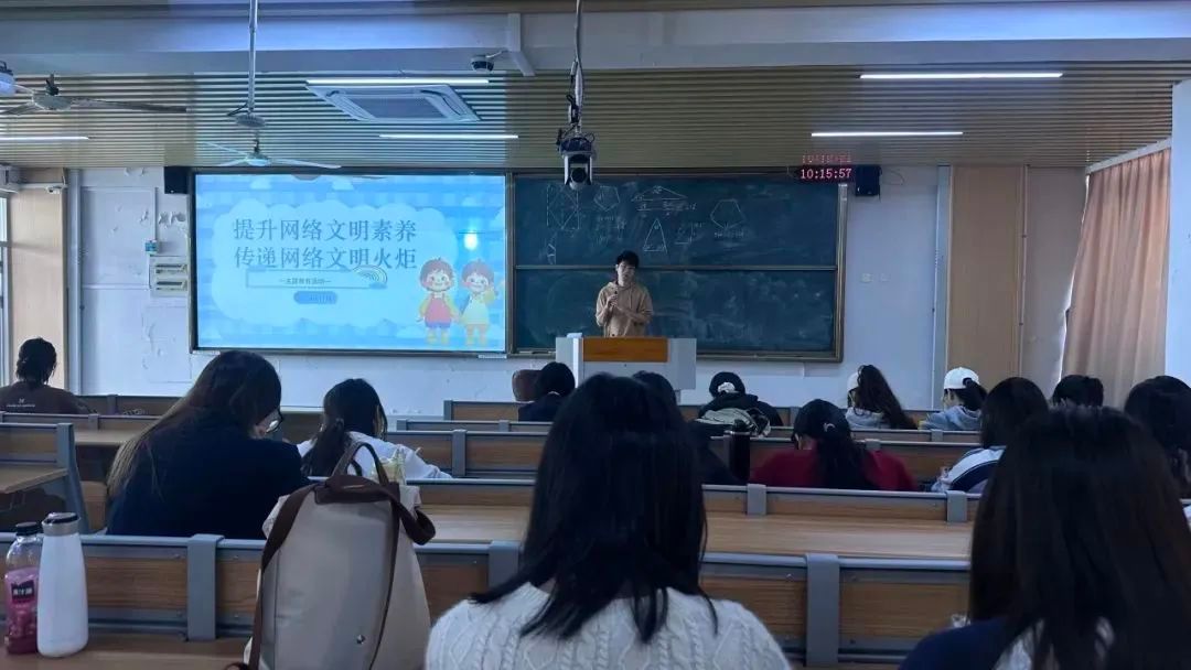 为进一步提高大学生网络文明素养,引导教育同学们科学合理使用网络,黄永鑫老师开设了网络文明教育主题班会。他讲解了当前网络平台中不规范、不文明的案例,以及造成的不良后果与影响,提醒同学们网络不是法外之地,要科学合理使用网络。此外,他还教育同学们要警惕网络不法分子刻意煽动,做到不信谣、不传谣,做好信息保护、保密工作。