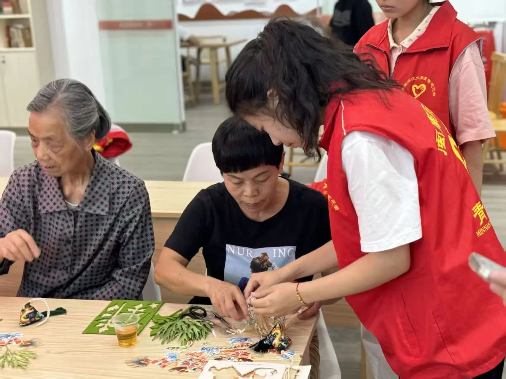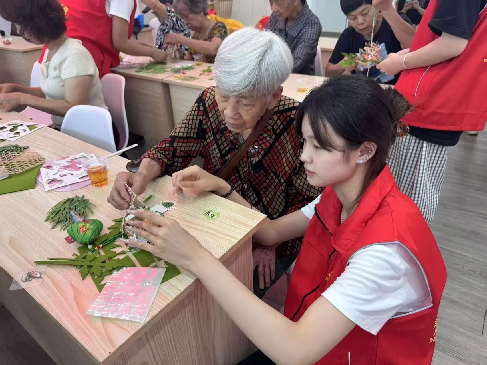 24级美术学(师范)1班团支部的同学们充分发挥专业特长,将艺术创作与节日氛围营造巧妙结合。在手工制作环节中,同学们耐心指导社区居民制作具有端午特色的非遗竹编龙舟手工。这些作品不仅展现了传统工艺的精巧绝伦,更让传统节日在创意表达中焕发出勃勃生机,赢得现场居民的连声赞叹。
