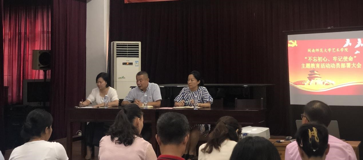 会上,汤书记传达了学校关于主题教育活动的工作部署精神和省委指导组的工作要求和指导意见,并详细介绍了本次主题教育活动的背景及重要意义。他要求,全院师生党员,特别是学院领导干部,要严格按照主题教育活动部署要求,结合学院专业特色,学科发展,人才引进等学院发展现状,围绕“守初心、担使命、找差距、抓落实”的总要求,把学习教育、调查研究、检视问题、整改落实贯穿全过程。