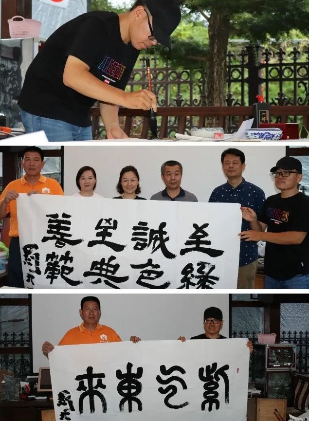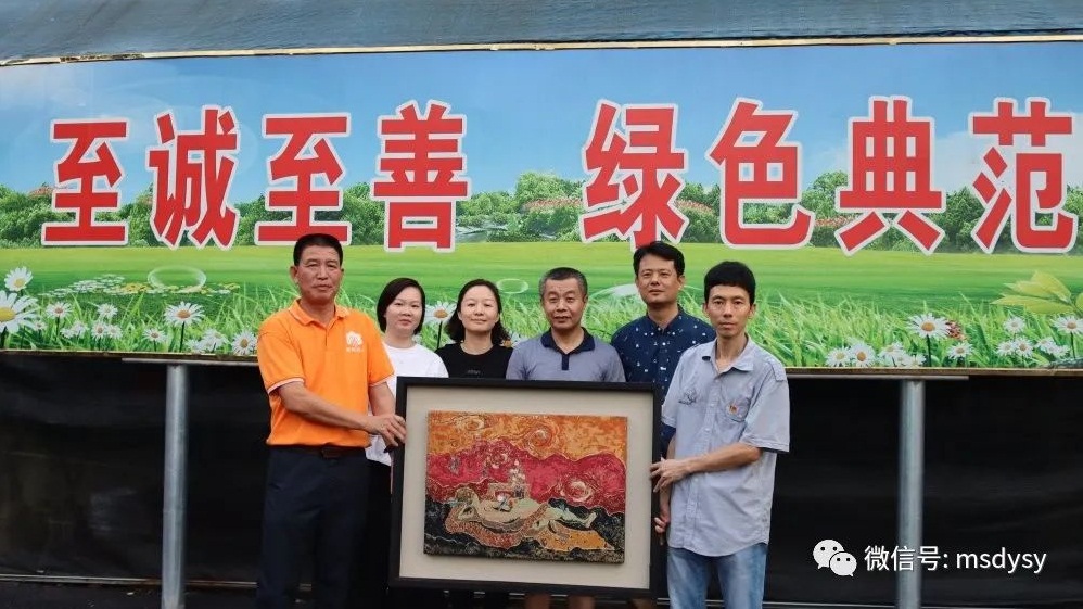 紧接着,支部党员刘北一博士以公司的经营宗旨“至诚至善、绿色典范”为题材进行现场书法创作。随后,教工第一党支部书记陈斌将党员师生共创的美术作品赠予该公司,助力企业复工复产,助力乡村振兴。